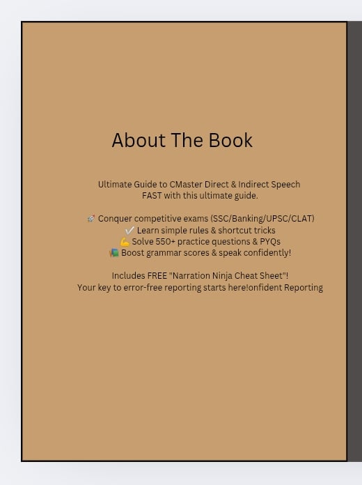 Unlock the secrets to confident, accurate, and compelling report writing with Balu Kandekar’s essential guide: Mastering Direct & Indirect Speech: Ultimate Guide to Confident Reporting. Specially curated for aspirants of SSC CGL, IBPS PO, CAT, CUET, UPSC, and State PSC exams, this book is a one-stop resource to conquer one of the most challenging components of English language assessment—direct and indirect speech.