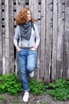 Das Tuch ist ein asymmetrisches Dreieck. Es ist reversibel, strukturiert und farbig. Klare Linien und ein leichtes Gestrick, das deine Garderobe aufpeppt.