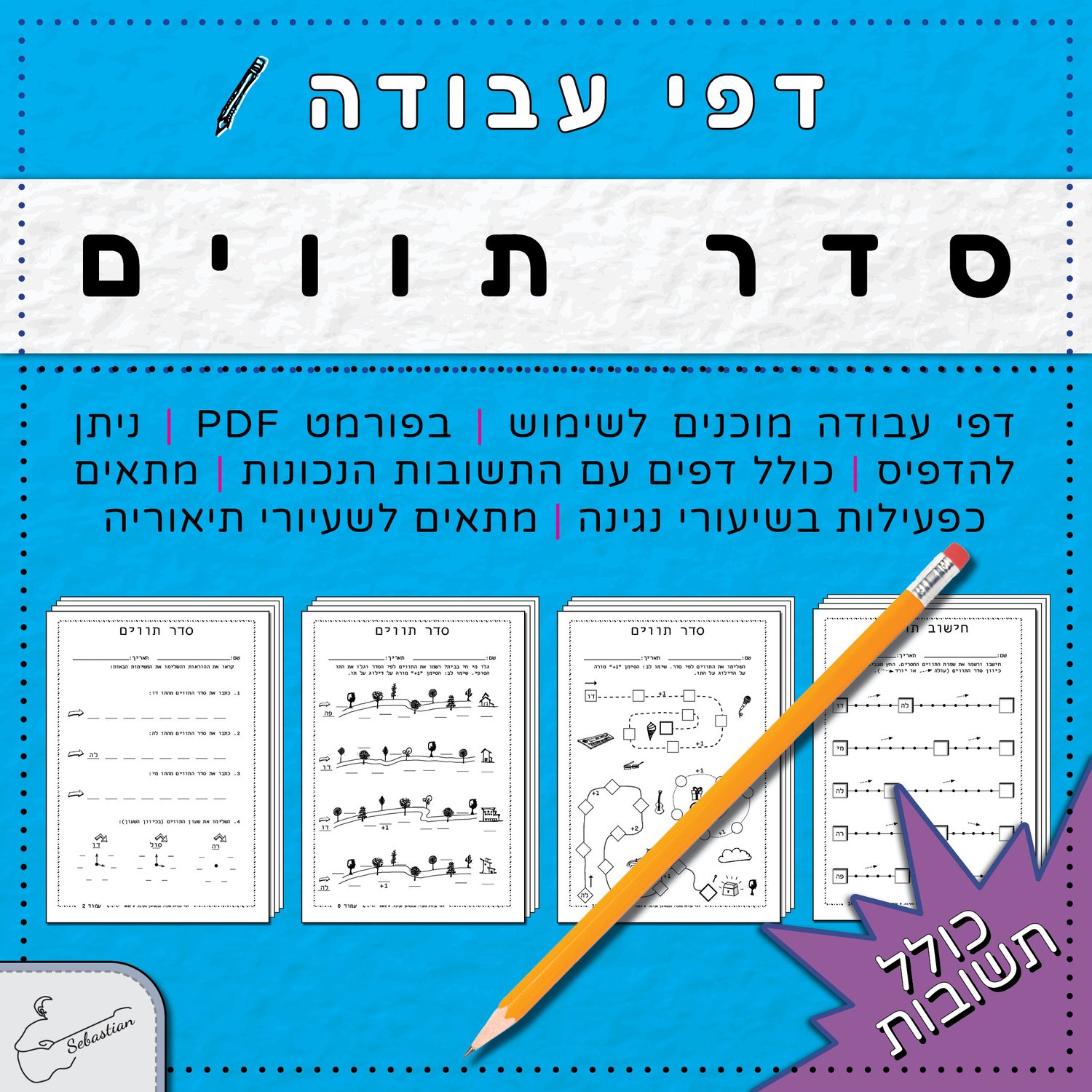 חבילת תרגול בנושא: סדר תווים - דפי עבודה עם תשובות להדפסה וכתיבה