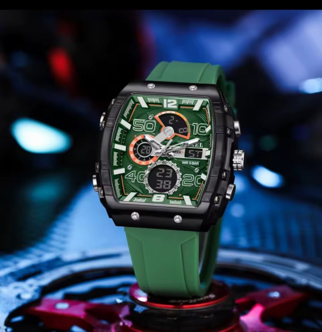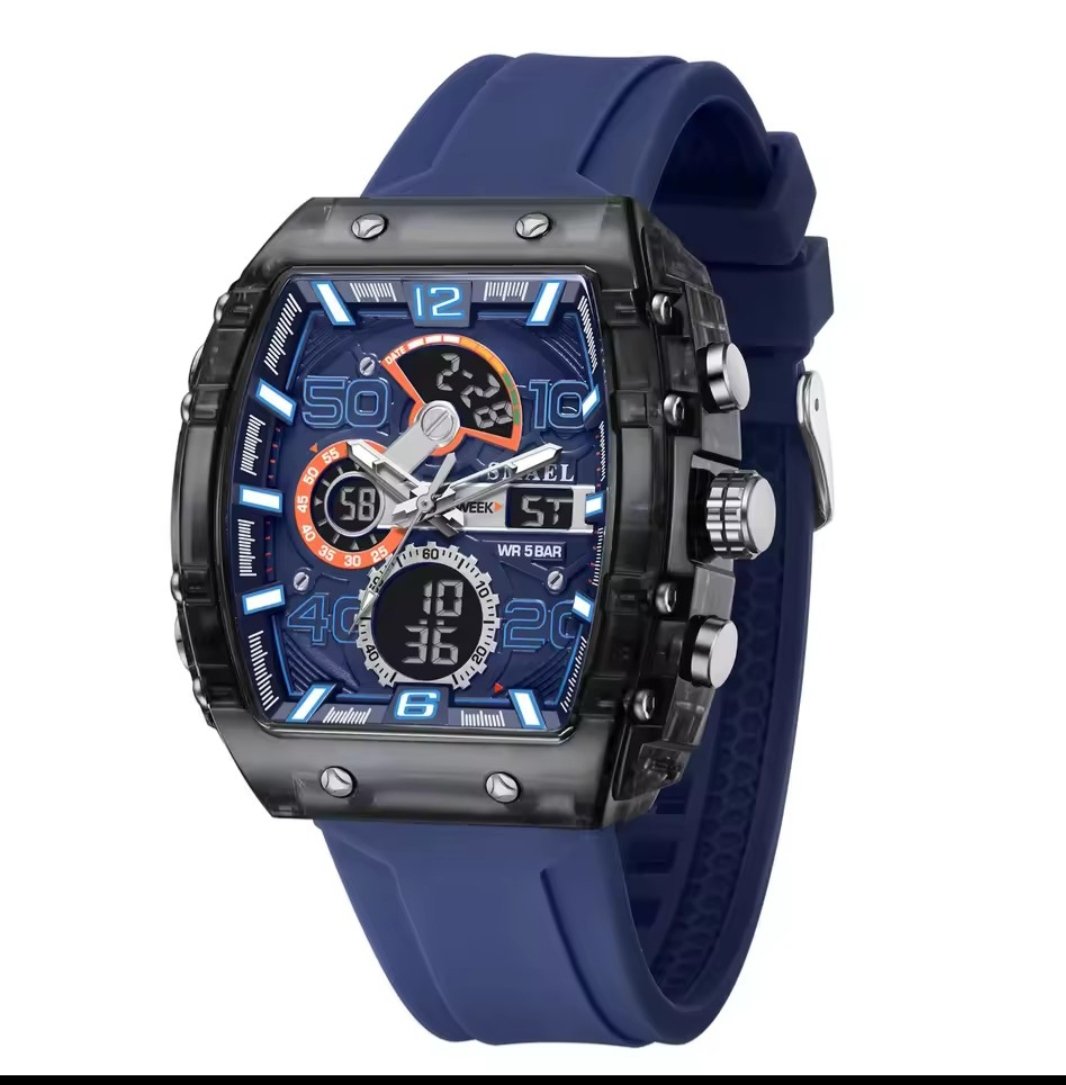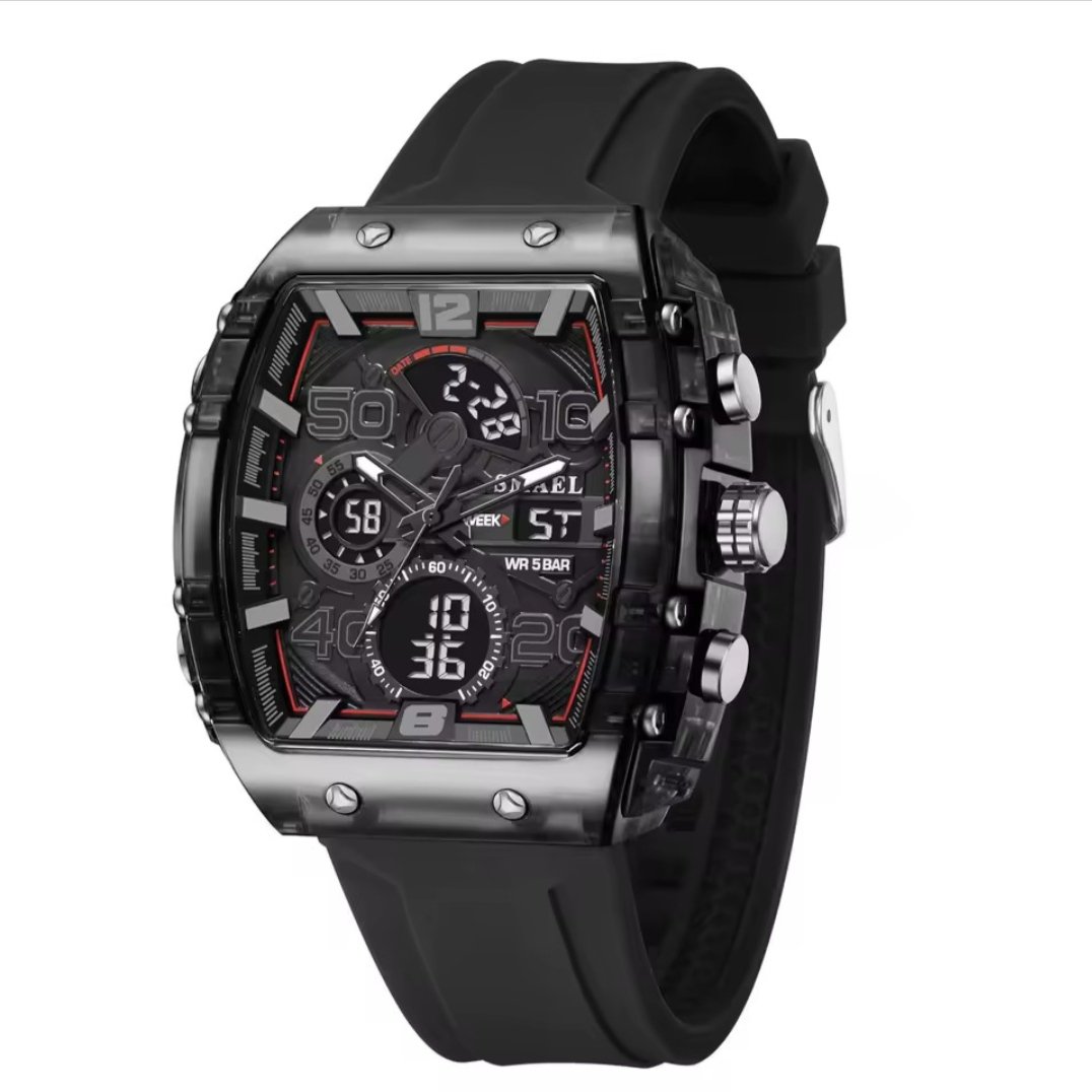 Unleash your presence with the SMAEL Imperium Vanguard 8109 — where precision meets prestige. Designed for the modern man of action, this dual-display timepiece combines digital innovation with timeless craftsmanship. Its luminous square dial and waterproof construction make it the ultimate fusion of power, performance, and elegance.