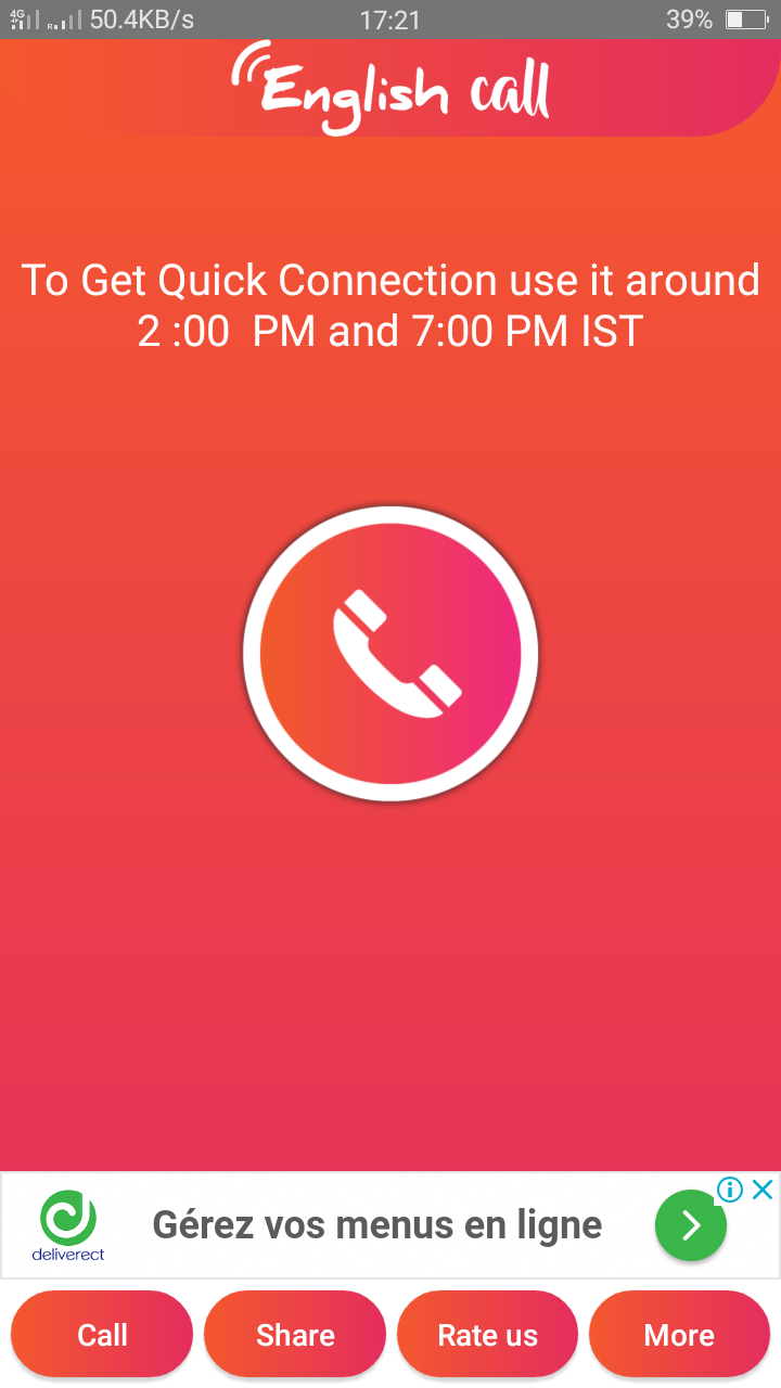 English call” English Speaking practice app allows you to talk with random peoples which will help you in improving your English speaking anywhere any place.