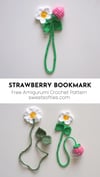 Free pattern viewable at: https://www.sweetsofties.chttps://www.sweetsofties.com/2025/03/strawberry-bookmark.html