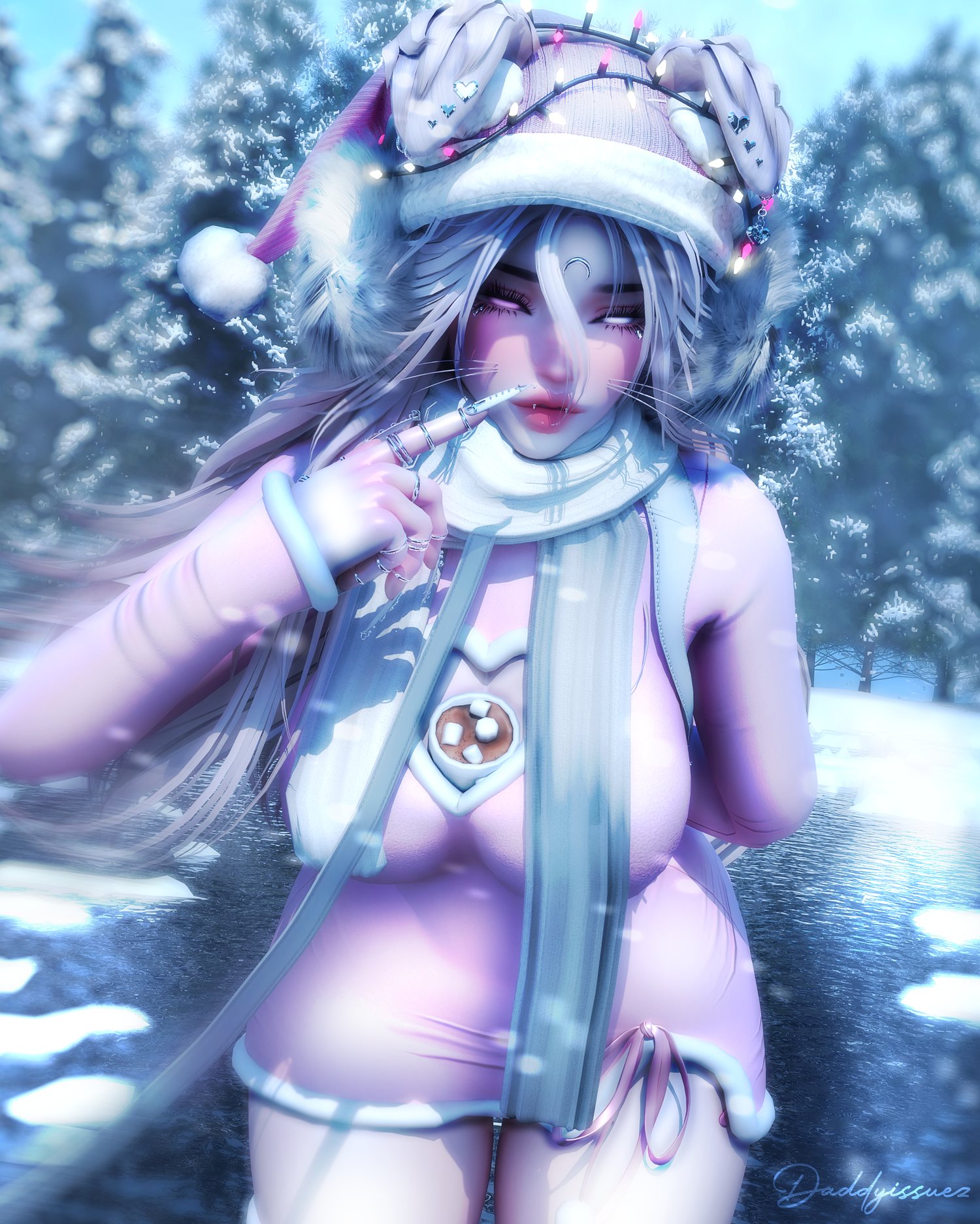 Showcase ; DDYSTUDIOS (Me / Bentai / Nessy) / hair 1 ; nessy. / hair 2 ; nessy. / hair 3 ; saikura / hair 4 ; saikura / ivory set (dress / boots / bottoms) ; Lolo3d / Brrr set (top / bottoms / leg warmers / cocoa) ; milkymutt / puppy set (tail / ears / hearts face piercings) ; Loki's vanity / Scarf ; Loki's vanity / Collar and Leash ; Loki's Vanity / Feline Fantasy set (band aids / edited body stickers) ; milkymutt / Whiskers & cookie ; Bentai_ / bear ; cozuwu / straps for backpack ; saikura / nails ; nauuki / uggs ; saikura / frost breathe ; ravio / head hearts ; gemini / elf ears ; cupkake / Face piercings(moon) ; Me, / Head (edited by bentai_ NO REUSE FOR ANYTHING) nessy. / Body( edited by me no reuse ) ; zinpia / Eye texture ; ifair / GOGO ; / VRCFURY / Limb scaler ; nanochip