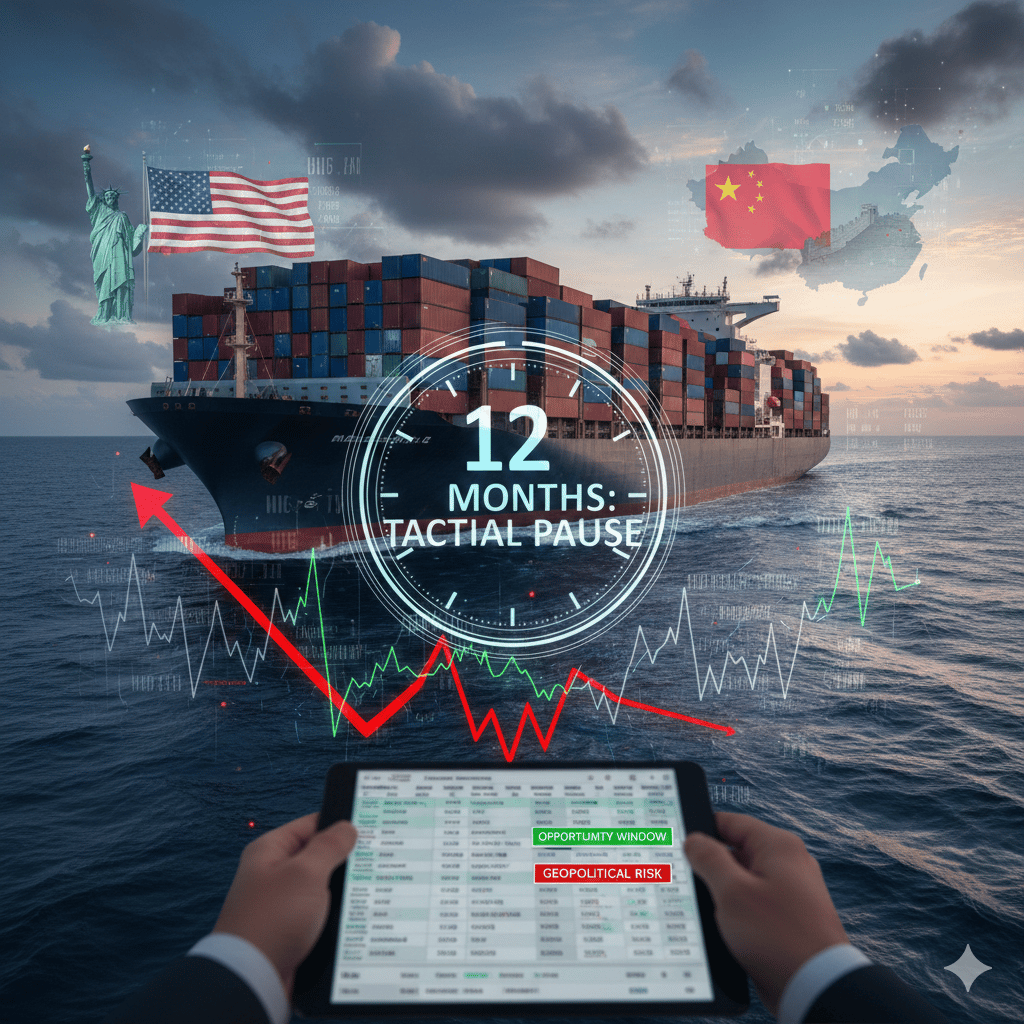 Este informe final consolida el análisis de la tregua comercial de 12 meses entre EE. UU. y China, calificándola como una pausa táctica, no una solución estructural. Detalla las concesiones clave, incluyendo la reducción drástica de aranceles (del 145% al 30% en EE. UU.) y la suspensión por un año de las tasas portuarias mutuas, lo que estabiliza el entorno logístico marítimo y representa un ahorro de hasta 3.200 millones de dólares para el sector naviero.