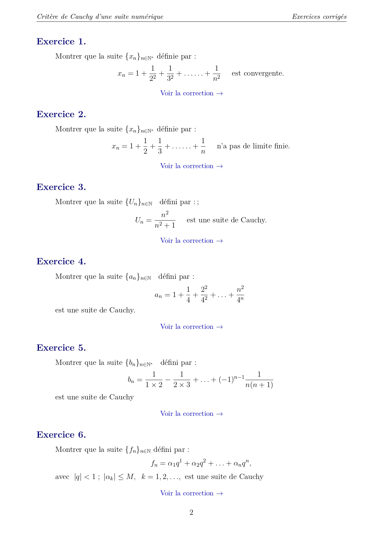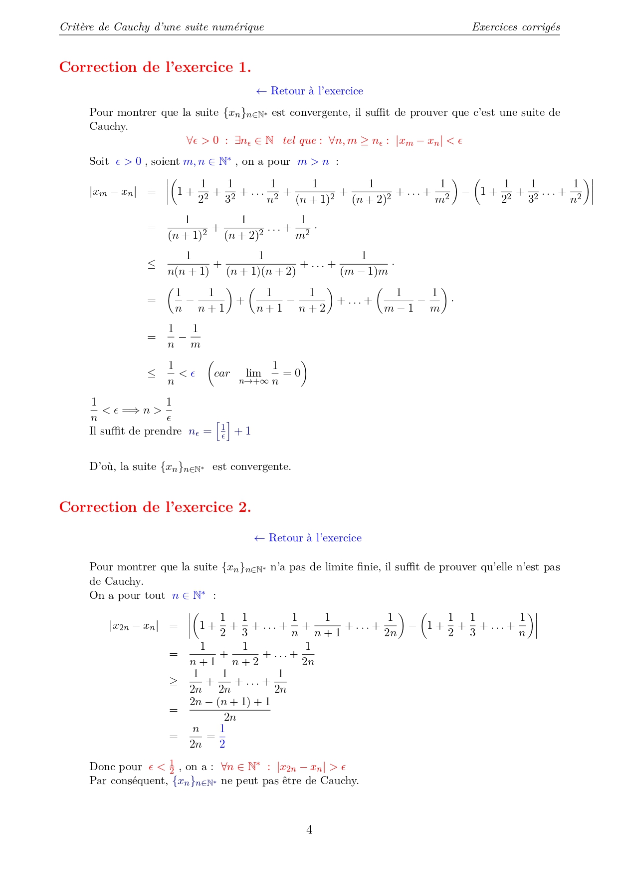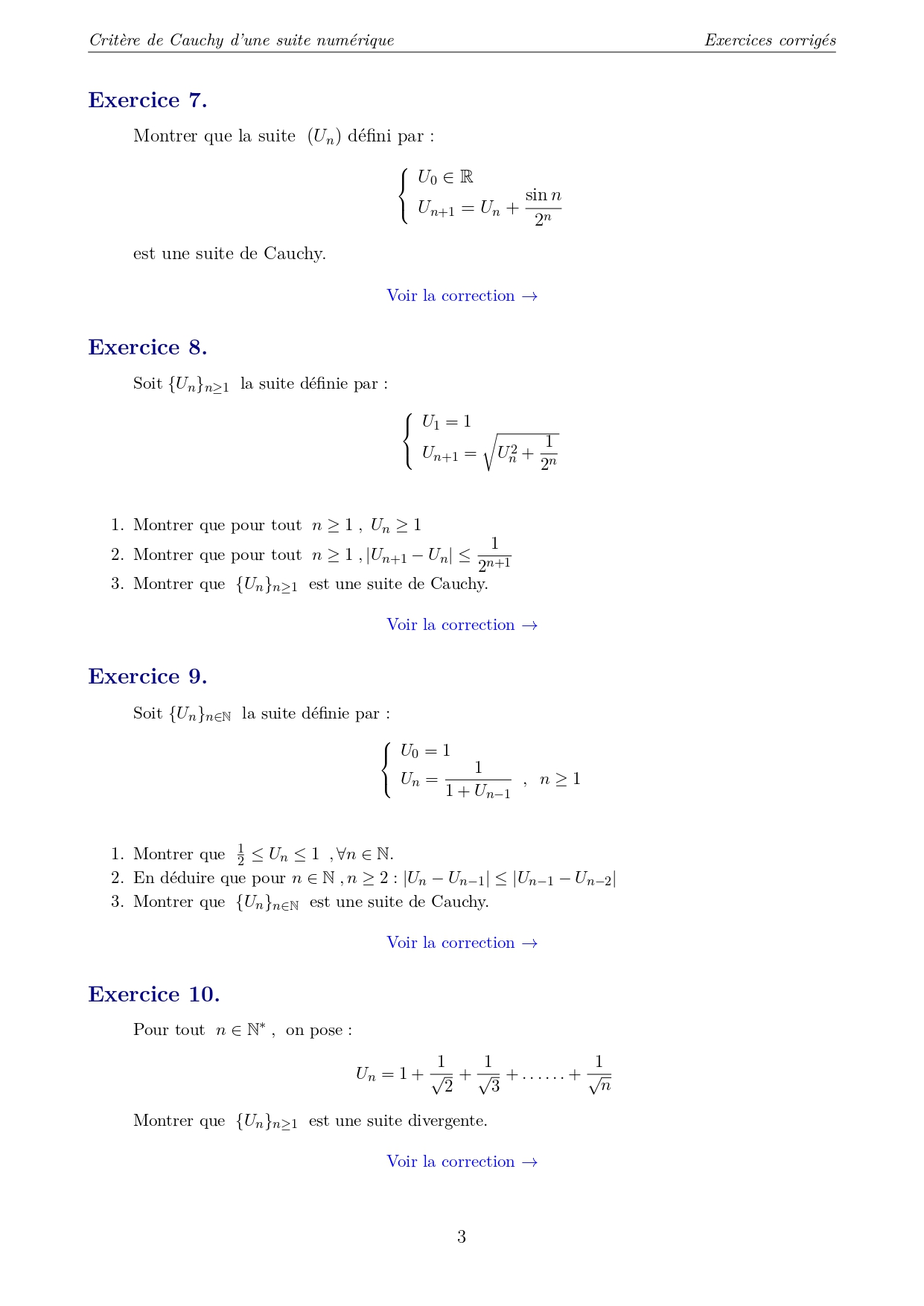 Critère de Cauchy d'une suite numérique avec exercices corriges