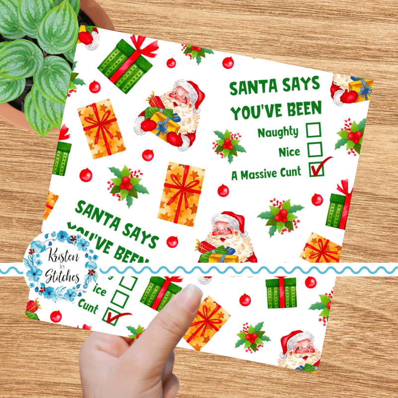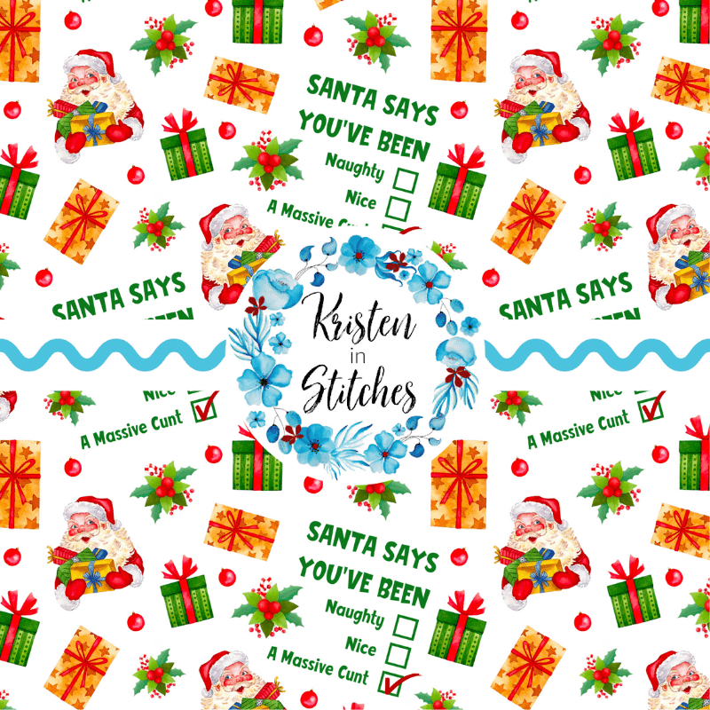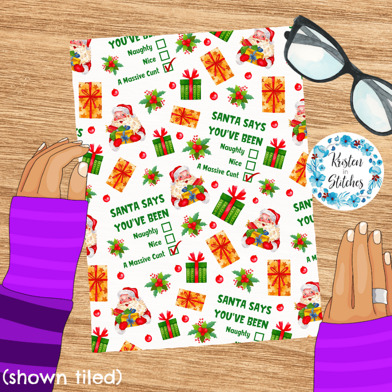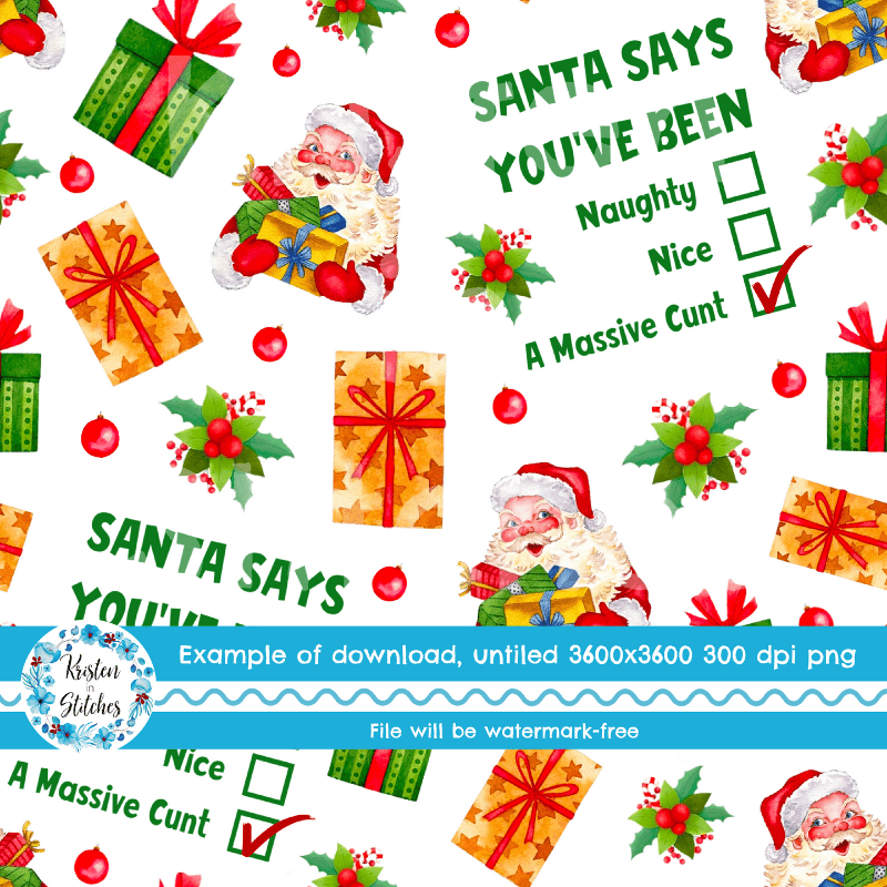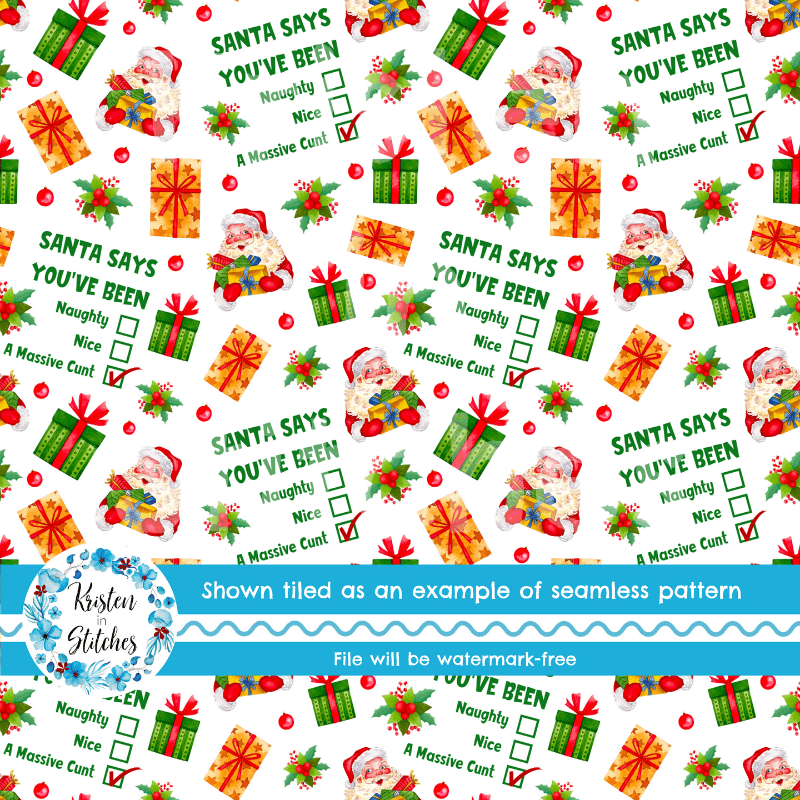 Santa Says You're a Cunt Sarcastic Sweary Christmas Seamless Pattern, Naughty or Nice