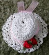 This is a pretty outfit, made with pale pink merino yarn and cream viscose trims.