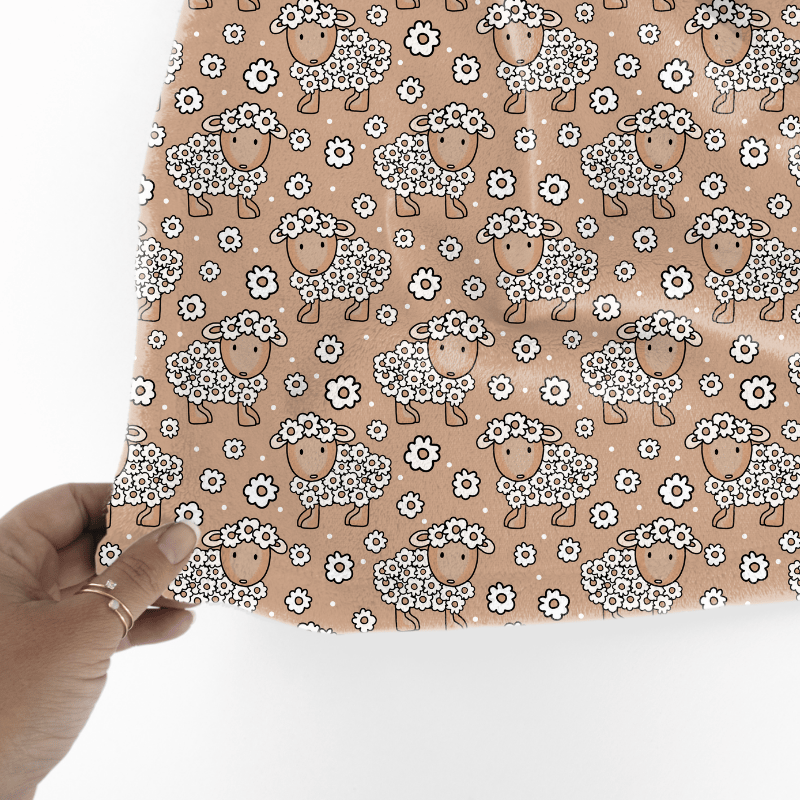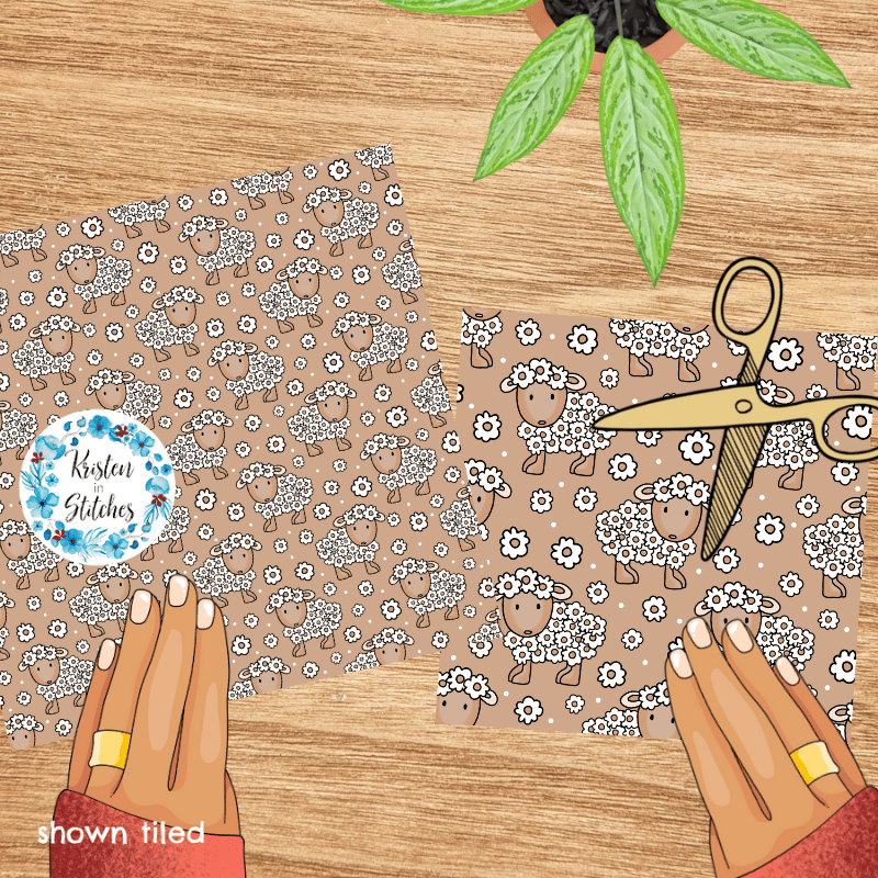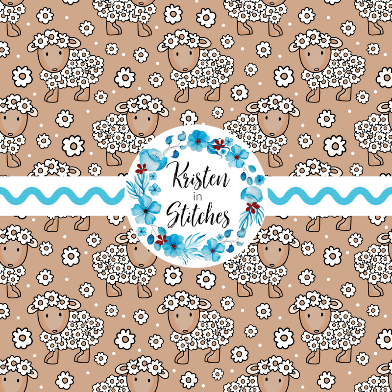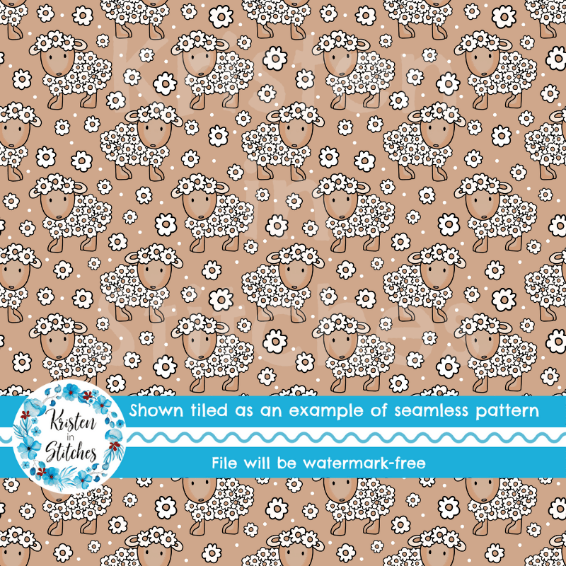 Daisy Flower Sheep Seamless Pattern, Tan