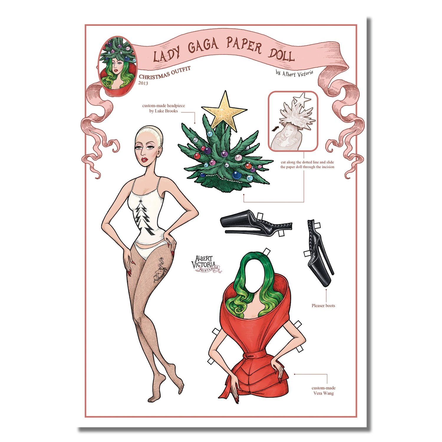Celebrate the festivities with this exclusive paper doll inspired by Lady Gaga's Christmas outfit she wore in London on 2013! This collectible digital edition celebrates Gaga’s bold, ever-changing style with a unique, detail-rich design – perfect for fans, collectors, and lovers of all things DIY.