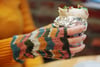- fingerless mitts: 160 {190, 220} yards / 145 {175, 200} meters total fingering weight yarn and size US 2 needles to knit in the round (or size to get a gauge of just under 8 stitches per inch / 6 stitches per 2 cm)