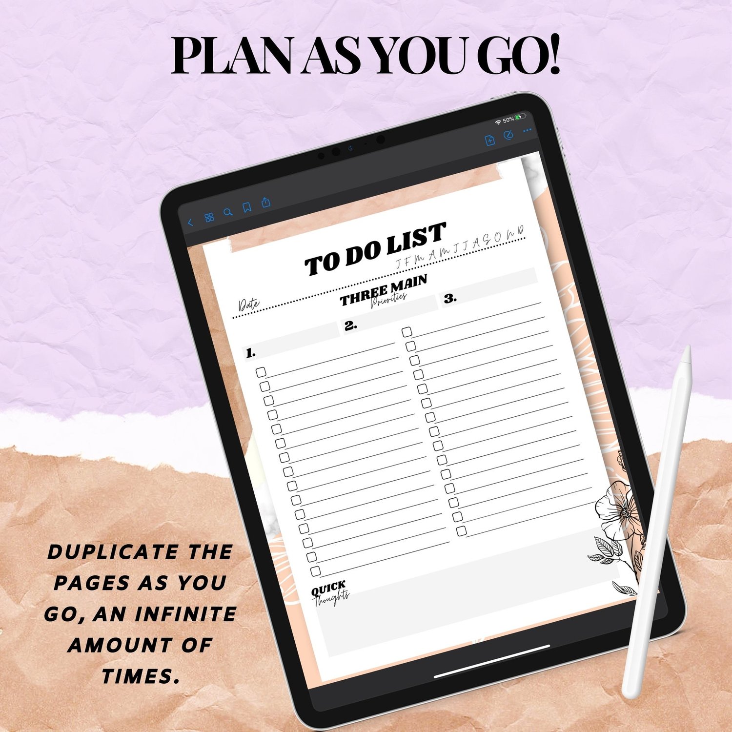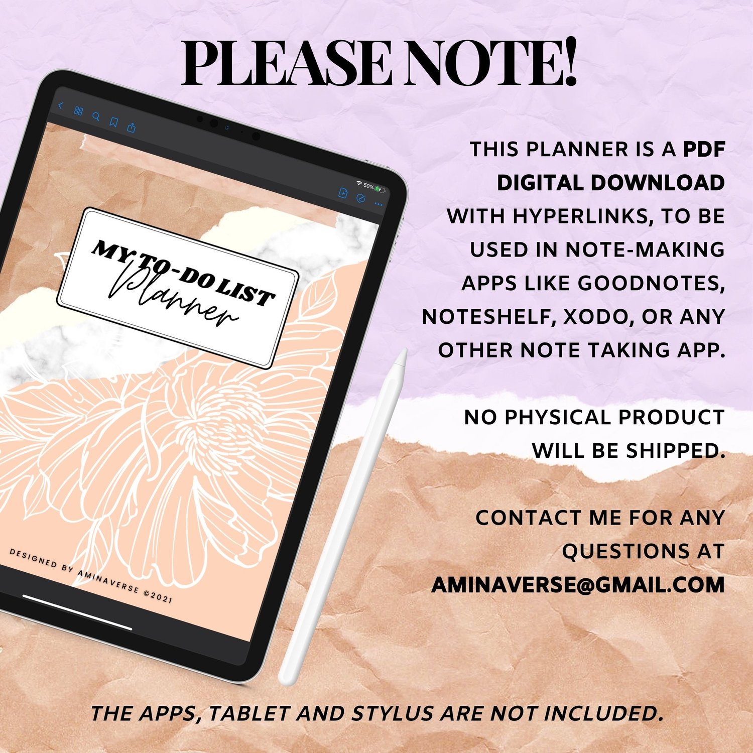The tablet, stylus and Apps required to use this planner are NOT included in your purchase.