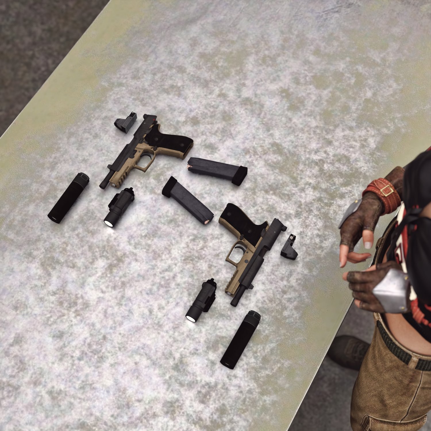 Cool modern pistol for cool modern people :) The prop is rigged and converted for use with DAZ. Trigger, safety, hammer etc also rigged for more realistic pictures. Great for military pics, spy related stuff or any other kind of pictures :) Includes a silencer which you can hide if you want to. can be used with attachments or without.