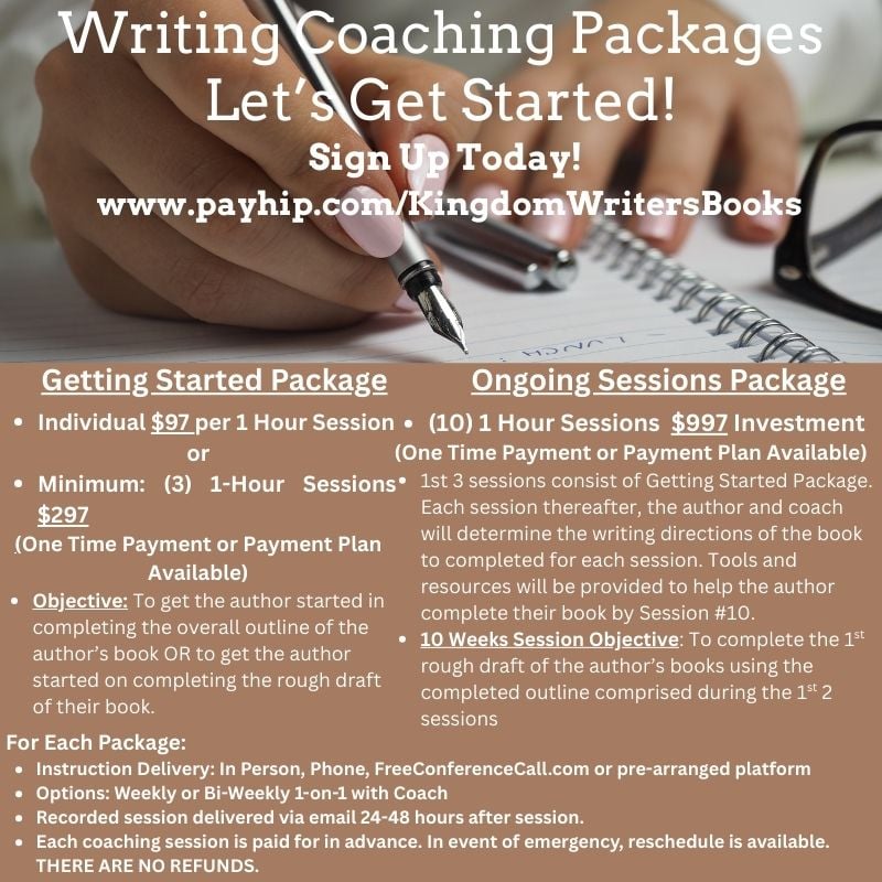 Kingdom Writers Books is here to help you start, write and finish your Book. Through our Write With Rutherford Sessions, start writing your book today. We would love to help you.