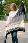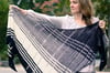 Colorblocks, stripes and vertical dropped stitches - it’s Not Quite Plaid, but looks vaguely tartan. An asymmetric bias shape and an atypical approach to creating a stitch pattern result in a fabric on which to combine colors for a nontraditional and modern shawl that is infinitely customizable. Choose colors and yarns that speak to you from your stash for your own perfect (not quite) plaid.