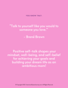 Don't let negative self-talk hold you back any longer; embrace the power of positive self-talk and unleash your true potential today. Remember how you talk to yourself is how you talk to others!