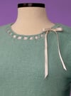 This beautiful sweater is a great addition to your work or dress-up wardrobe, but why not wear it with jeans as well. The bows are optional, and the sweater is lovely with or without them. Or leave the ribbon out altogether – the eyelets make a lovely trim at the cuffs and neck. There are instructions for shortening or lengthening the waist to better fit your shape.