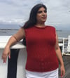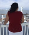 Named after my eldest daughter, Amira is an elegant top that would look well under a blazer with a skirt or by itself over jeans. This sleeveless shell has a modified, draped boat neck with lace and texture to form a modest and feminine line which can take you from early spring through fall or early winter. With 11 sizes to choose from, you are almost guaranteed to find a fit that flatters.
