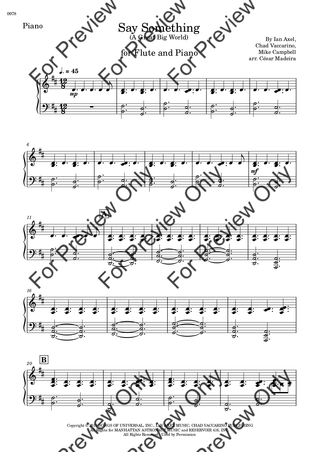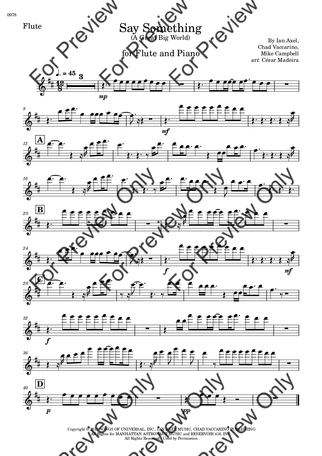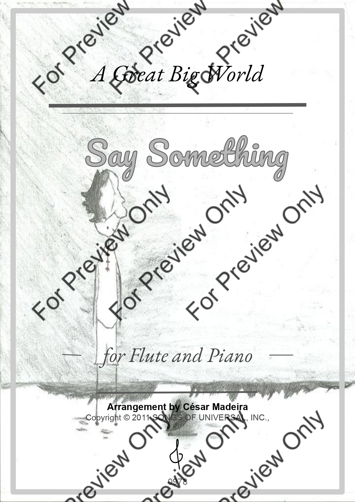 Say Something by A Great Big World and Christina Aguilera. Arrangement for Flute and Piano. With Full Score and Individual Parts. Have fun!