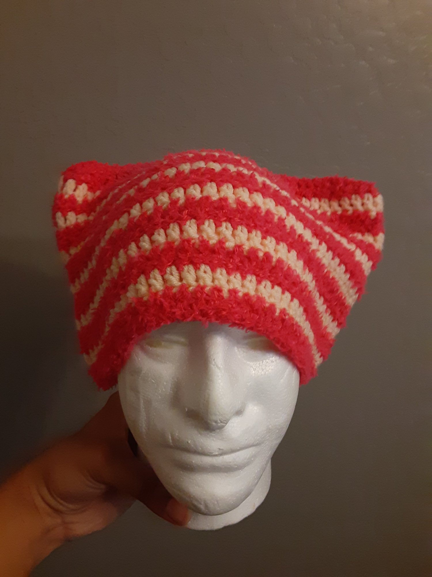 Feel the Love Cat Ear Beanie - Ready to Ship - Striped Crochet Beanies