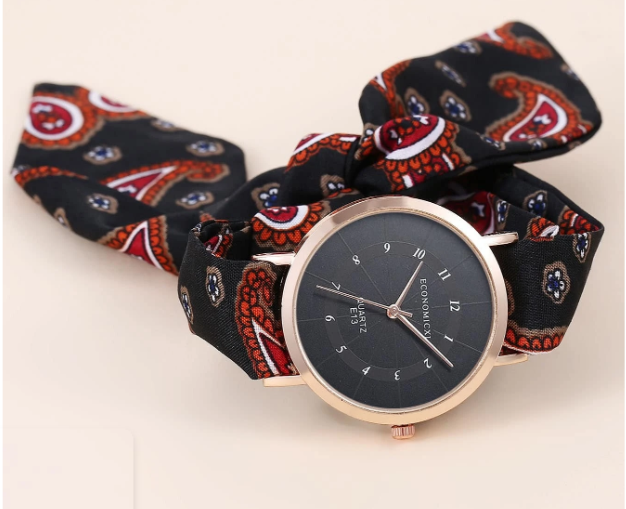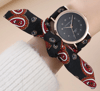 Designer-inspired, scarf wrap band watch. Black, White, & Red scarf bandana print