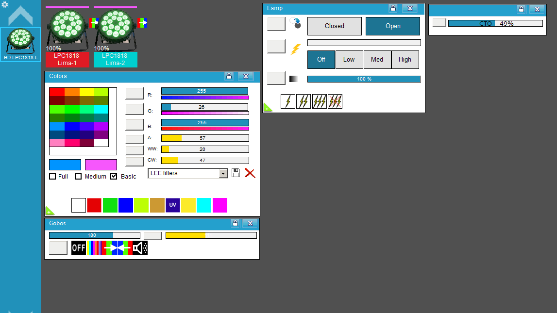 • Modo Audiorítmico y Automáticos con velocidad (Panel de Gobos):