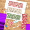Use them to mark your favorite pages, gift to a friend, or include in a themed care package! Put a hole punch at the top and add your favorite fringe, tassel or charm.