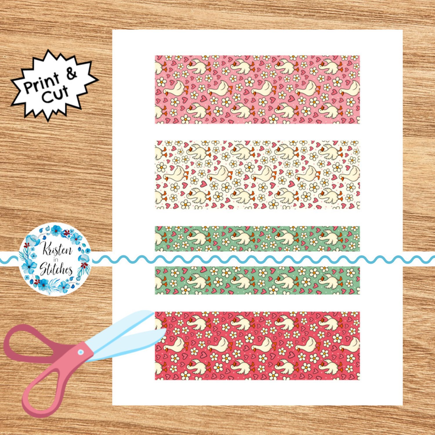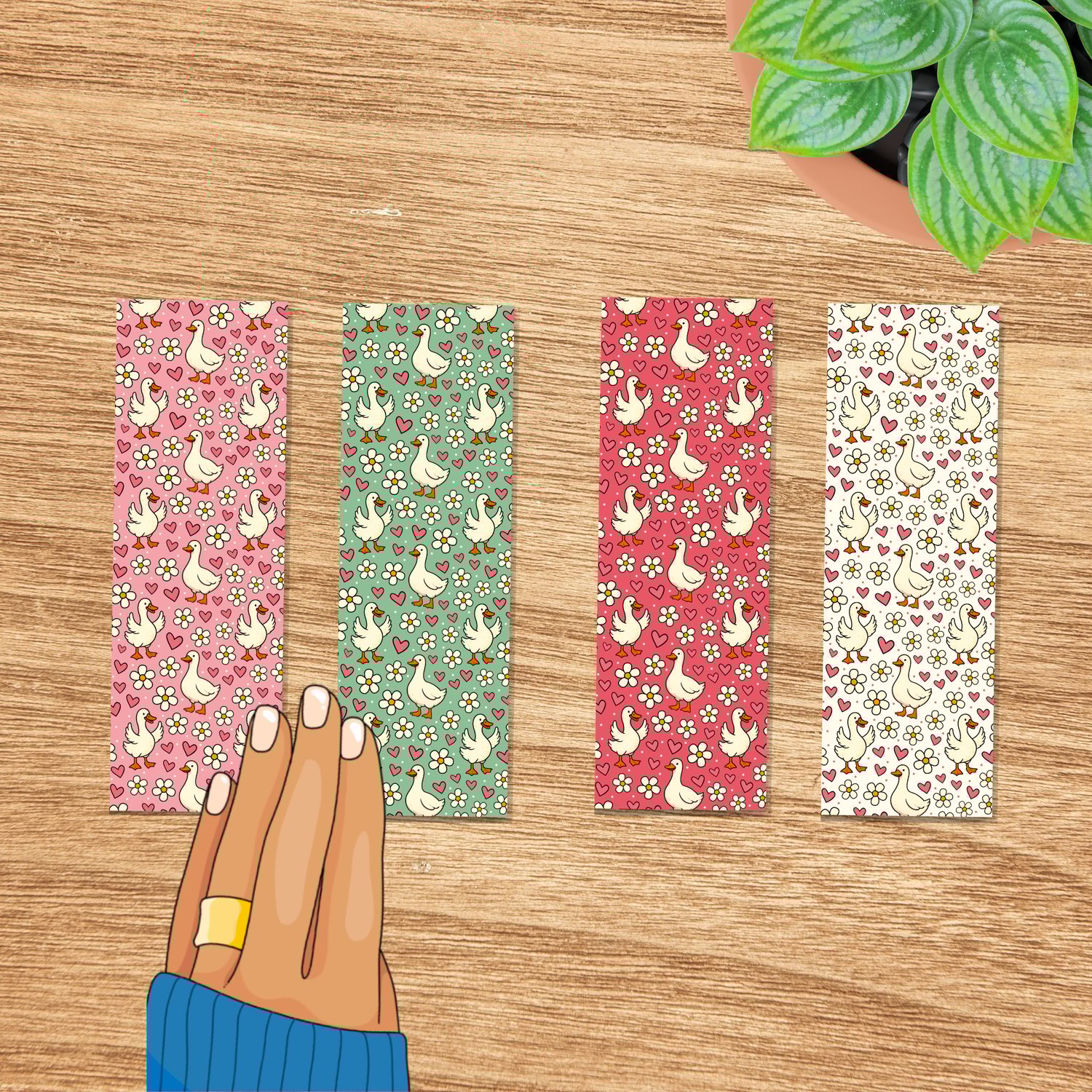 Ducks and Daisies Printable Bookmarks Sheet 2x6 Print and Cut PDF PNG Craft Prizes Activities, Silly Goose