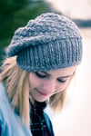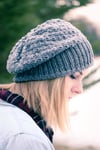 A rolled stockinette edge, asymmetric ribbing and a subtly delicate textured stitch make Truffle Hunter a special hat of distinction. Short rows both shape the brim and add extra slouch at the nape, and the simple stitch pattern brings precious appeal to both sides of the fabric. Finished carefully, the hat is fully reversible for two lovely and unmistakably unique looks.