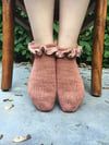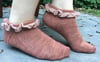 The Tracery Socks are a modern take on the classic white lace anklet socks. These socks add a bit of flair to any outfit. Rock these socks under a summer dress or jazz up a pair of jeans with the ruffle peeking out from underneath your trousers. The Tracery socks are knit from the cuff down with the ruffle flowing seamlessly from the leg of the socks. The socks feature a heel flap and gusset construction.