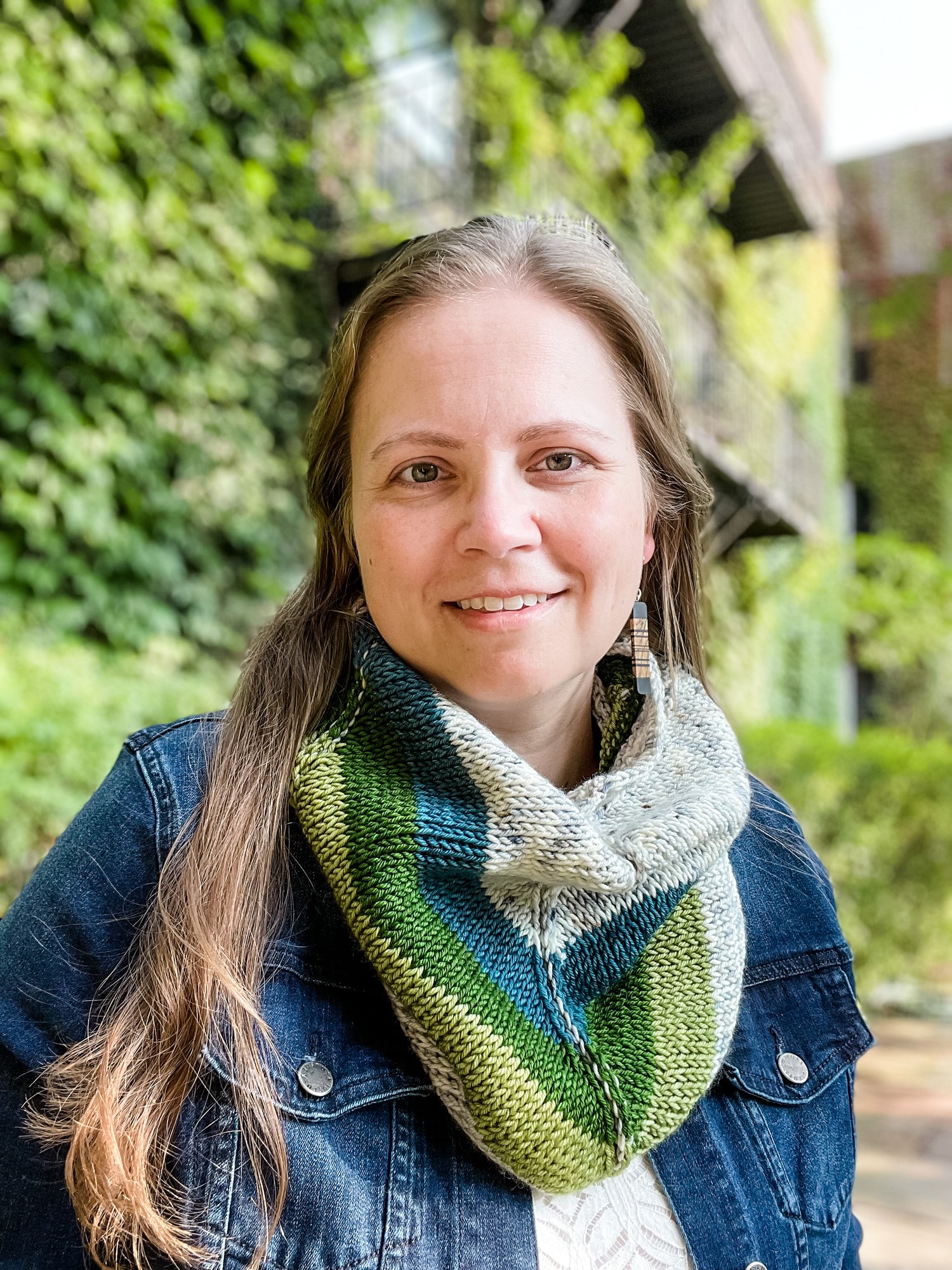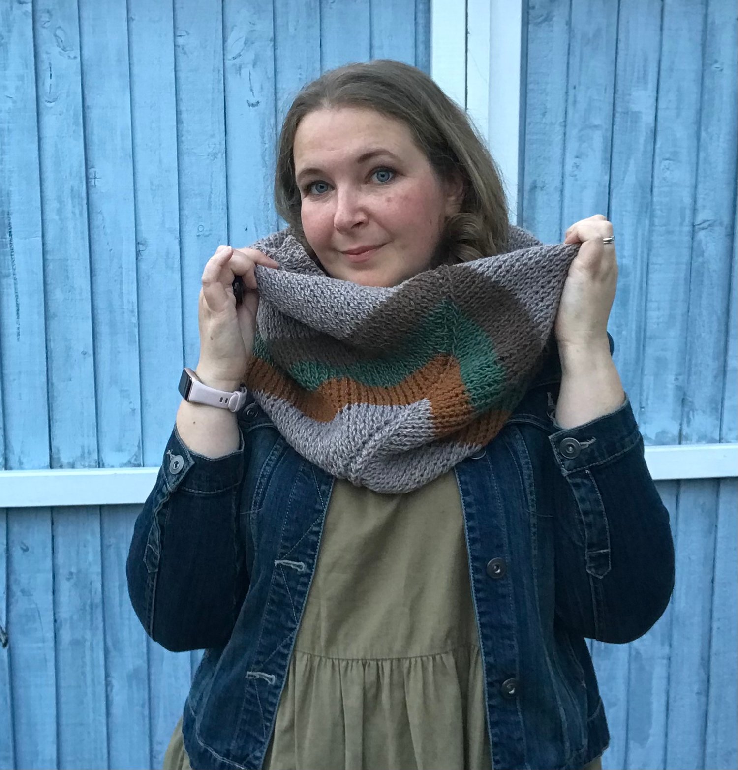 The Spectrum Cowl is the perfect snuggly, squishy, cold weather accessory! It comes in two sizes. The smaller size was made in DK and the larger in Worsted weight yarn.
