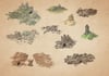 Rocky outcrops, patches, tors and cave assets for fantasy cartography.