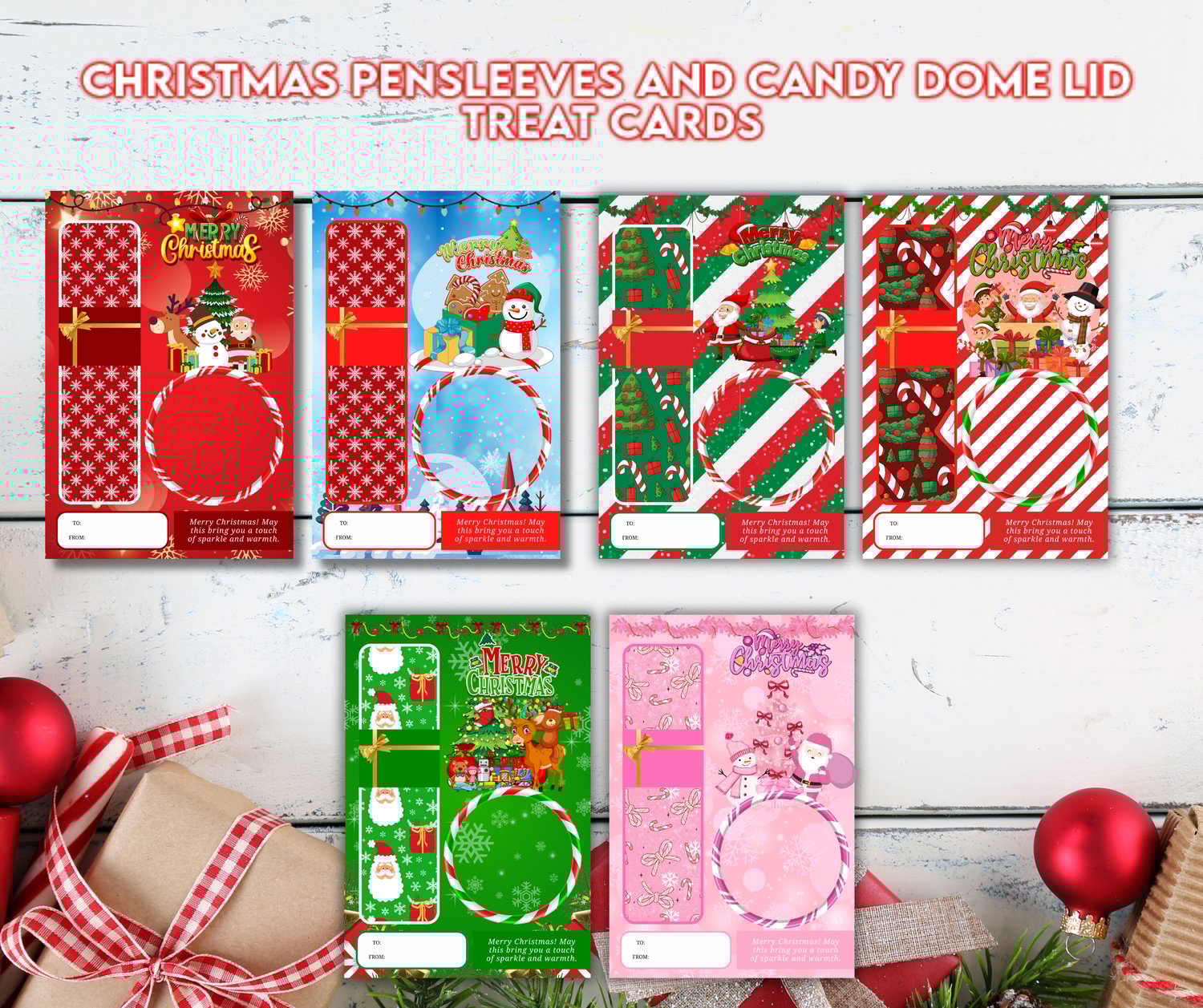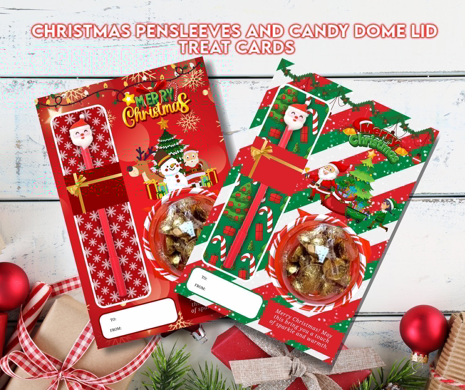 CHRISTMAS PENSLEEVES AND CANDY DOME LID TREAT CARDS