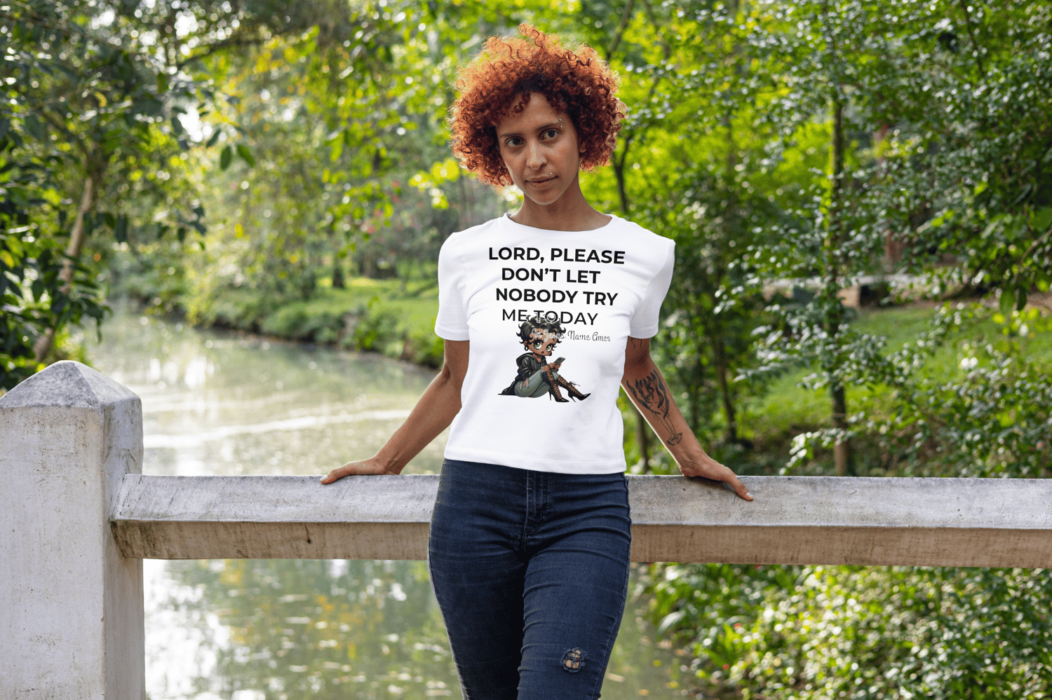 Featuring a confident, stylish character design paired with the powerful affirmation “In Jesus Name Amen,” this shirt is more than clothing – it’s a daily declaration of strength, prayer, and trust in God. Whether you’re relaxing, running errands, or attending casual gatherings, this tee is a reminder that faith carries you through every season.