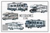 This listing is for a collection of 11 Motorhomes. These are the larger RV Vans. They are high resolution PNG files and suitable for sublimation and print. These work perfectly on their own but are also designed to work with my other camping sets. Have Fun. Any questions please get in touch.