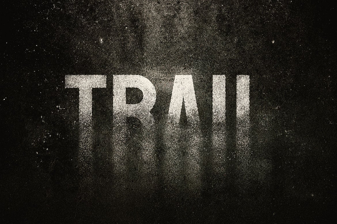 Bold, white letters that seem to be partially dissipating or dissolving into a dusty, grainy texture. The letters have a weathered and textured appearance, as if they are written in chalk or sand, giving a sense of impermanence or fragility.