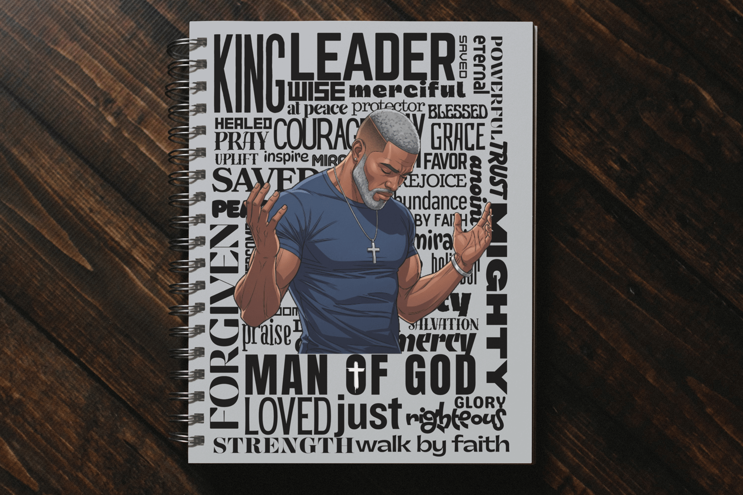 This Man of God Journal Cover design is the perfect way to create faith-based journals, Bible study notebooks, and inspirational planners. Featuring a powerful prayer illustration with uplifting scripture-inspired words in the background, this 5x7 cover is a bold reminder of strength, faith, and God’s grace.