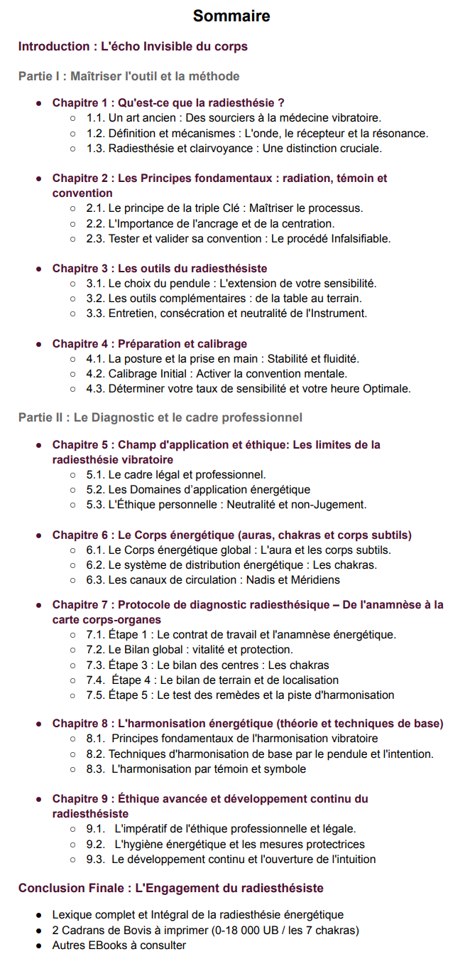 L'e-book "Radiesthésie vibratoire : Guide pratique d'analyse énergétique" est la clé de votre autonomie diagnostique.