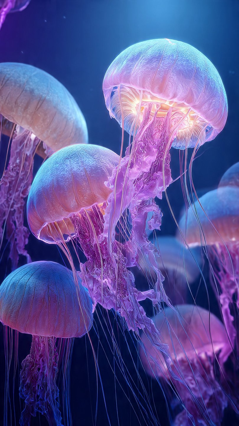 From floating jellyfish in pink clouds to golden mountain sunsets and gentle watercolor art, every wallpaper tells a story of peace, elegance, and imagination.