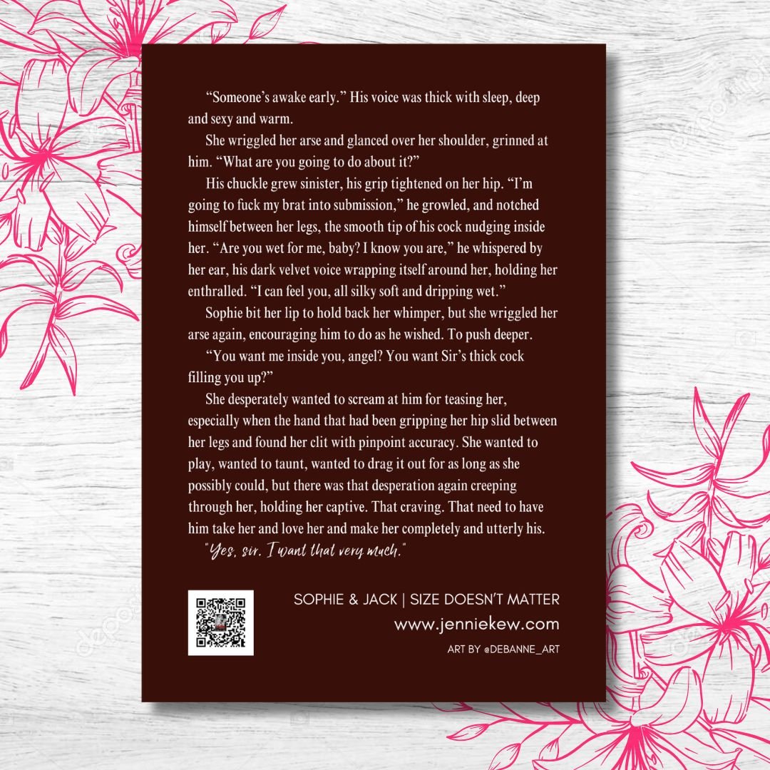 Art print depicting a love scene between Sophie Bennett and Jack Martin from chapter 26 of Size Doesn't Matter, book 5 in The Bennett's Bastards Series.