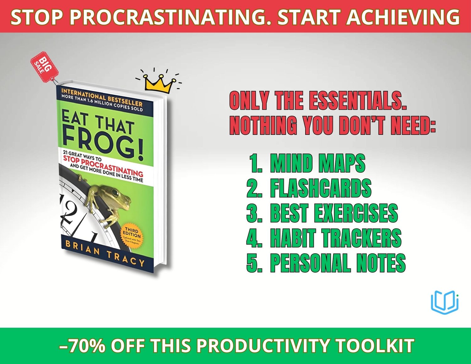 This isn’t just a book summary. It’s a practical system designed to help you stop procrastinating, tackle your biggest tasks first, and get more done every day with less stress.