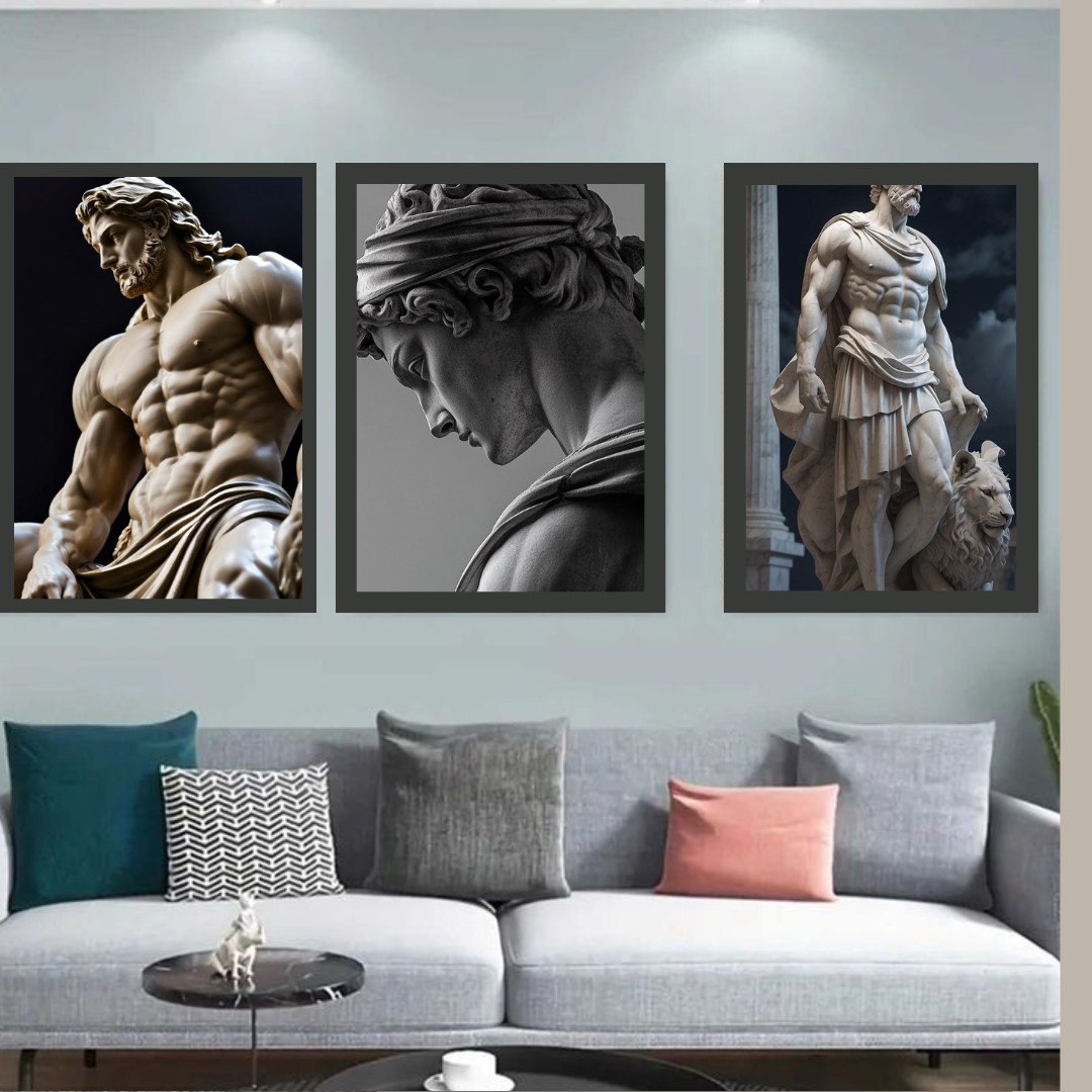 Add a touch of classical power and timeless elegance to your space with this striking set of 3 digital wall art prints inspired by Greco-Roman sculpture. Each piece captures the strength, grace, and detail of ancient gods and heroes in stunning high-resolution imagery.