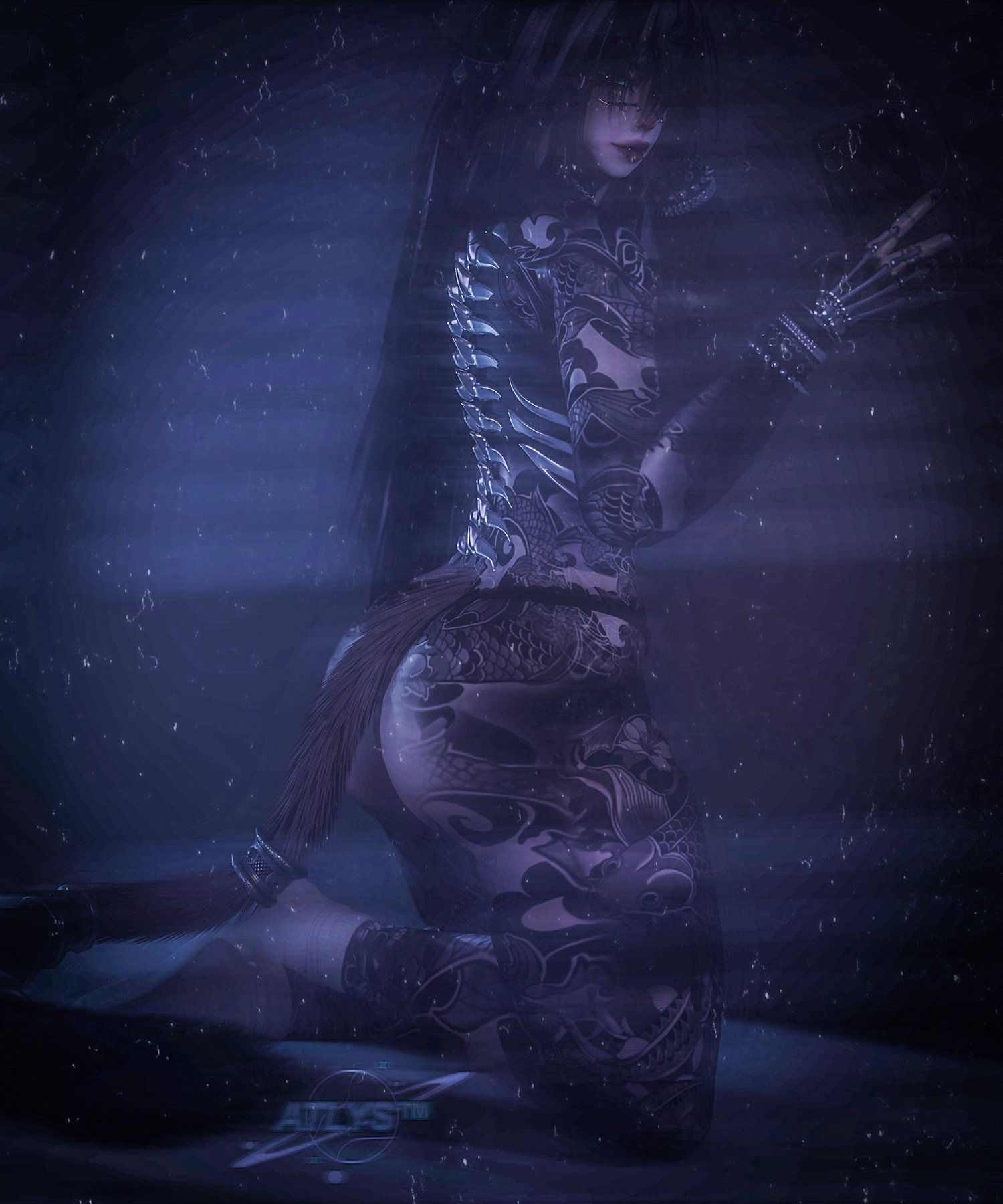~Halfup Hair, Mesh Dress, Leather Pants, Fur Jacket, Gothic Underwear - Deimos