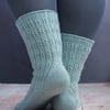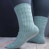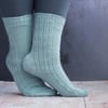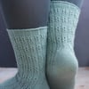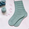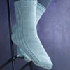 Imagine wandering on the beach, combing for shells and sea glass. The waves are gently hitting the shore. Sea Comb evokes your steady footsteps followed by those quiet moments with the simple rib and cable pattern and the ‘sea’ of stocking stitch. Those quiet moments are reflected in the relaxing knitting process as the cable stitches are created with no cable needle and the strong heel is created with just increases and decreases.