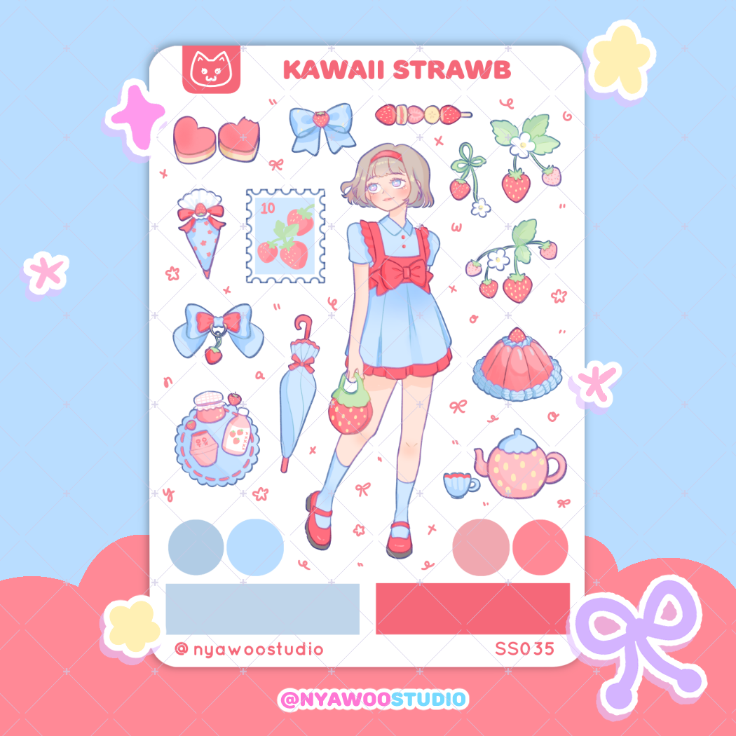 Kawaii Strawb | Strawberry-themed Stickers for Planners, Scrapbooks, Journals