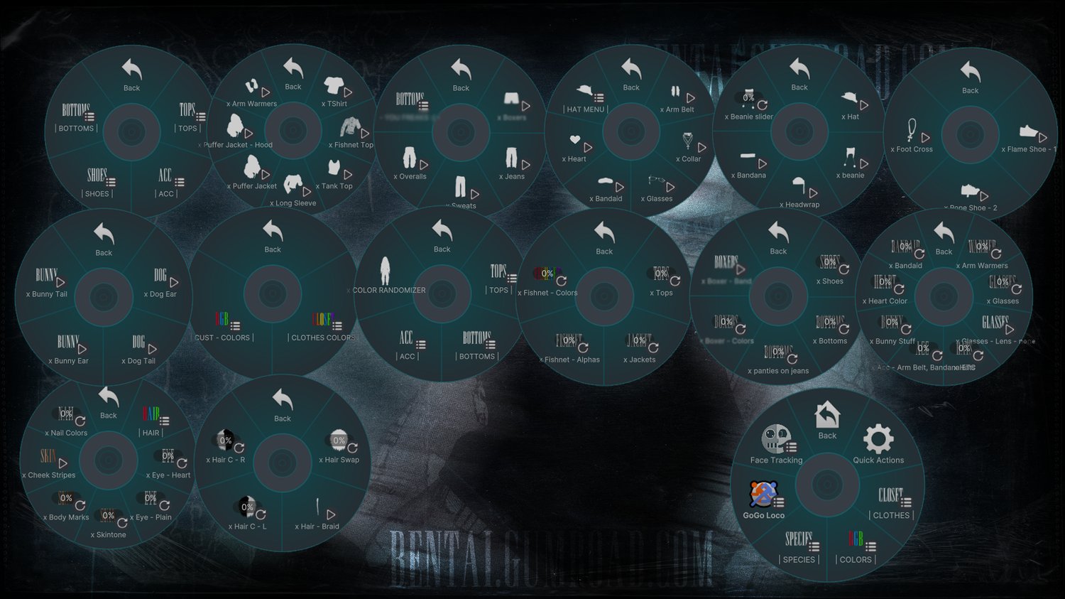 - Customization : Skintone Radial, Bodyart Radial, Cheek Stripes, Eye (Clean/Heart), Nail Color.