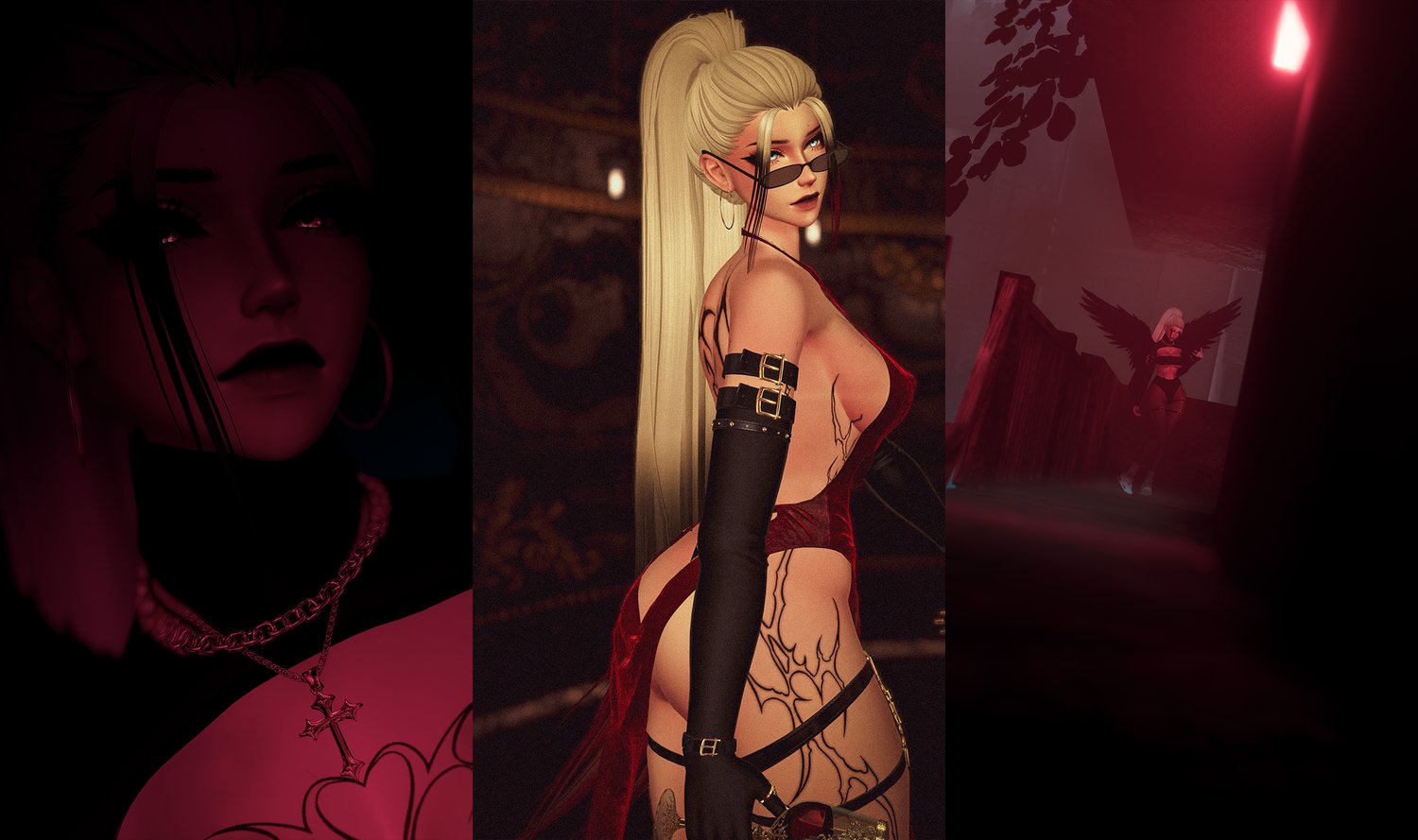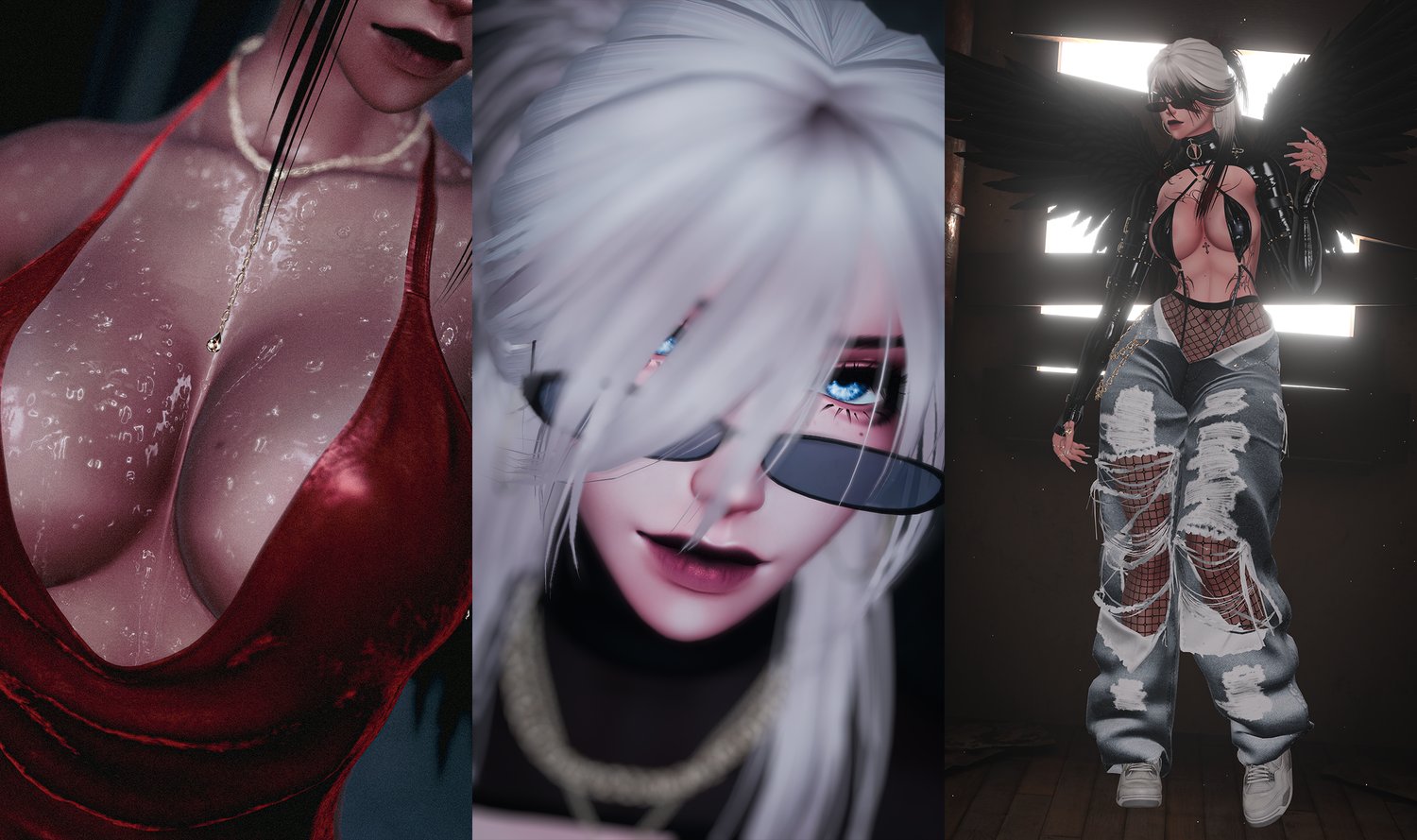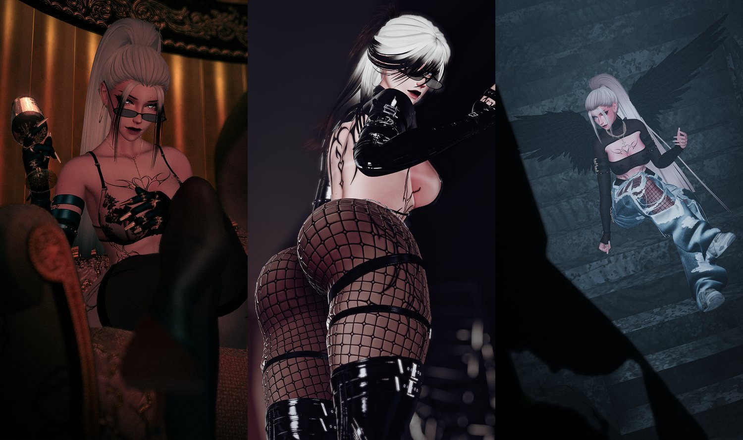 BODY (EGIRL, MY EDIT), PONYTAIL & STRAIGHT STYLIZED HAIRCUT & LINGERIE & STOCKINGS & GLOVES & GLASSES & HEAD (HEAVY EDITED BY ME) - NESSY, CROSS CHAIN (SEBS), DRESS, CHOKER, HEELS, WINE GLASS (THE THICC WITCH), BRACELETS, GARTERS, WAIST CHAIN (VINUZHKA), EYES & BROWS FROM SUNNY HEAD (SIVKA), RINGS (BRUCE), WISHFUL MESH SET, LATEX BODYSUIT, FISHNET (BEANIEBABY), NECKLASE (BOOKIESON), BOOTS, LATEX SLEEVES (WINKS), SHORT HAIRCUT, STYLIZED HAIRCUT, JEANS, WINGS (SAIKURA), FACE TEXTURE & BODY NORMAL (YING YANG), SOCKS (CRUSHCOUTURE), GESTURES & INVISE (PHAWKSEA), WET BODY TEXTURE (DEIMOS), HIGHTOPS (PLAZ), AV3 CREATOR (Rafa), GOGO LOCO (Franada), Wholesome SPS Configurator, NAILS (JVLIETTE), AVATAR LIMB SCALING (NANOCHIP), FT TAMEPLATES (JERRY'S)