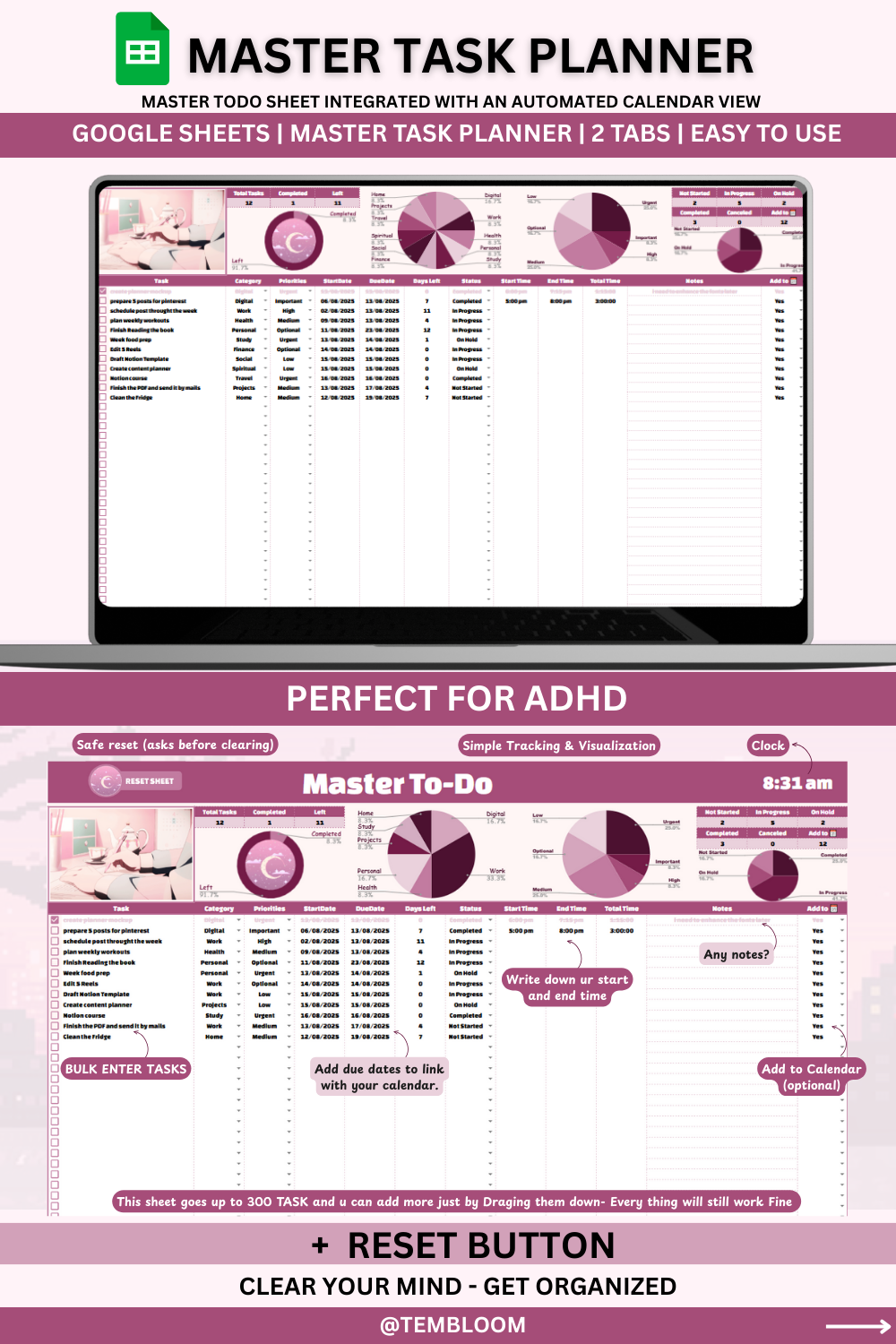 MASTER TASK PLANNER - PERFECT FOR ADHD