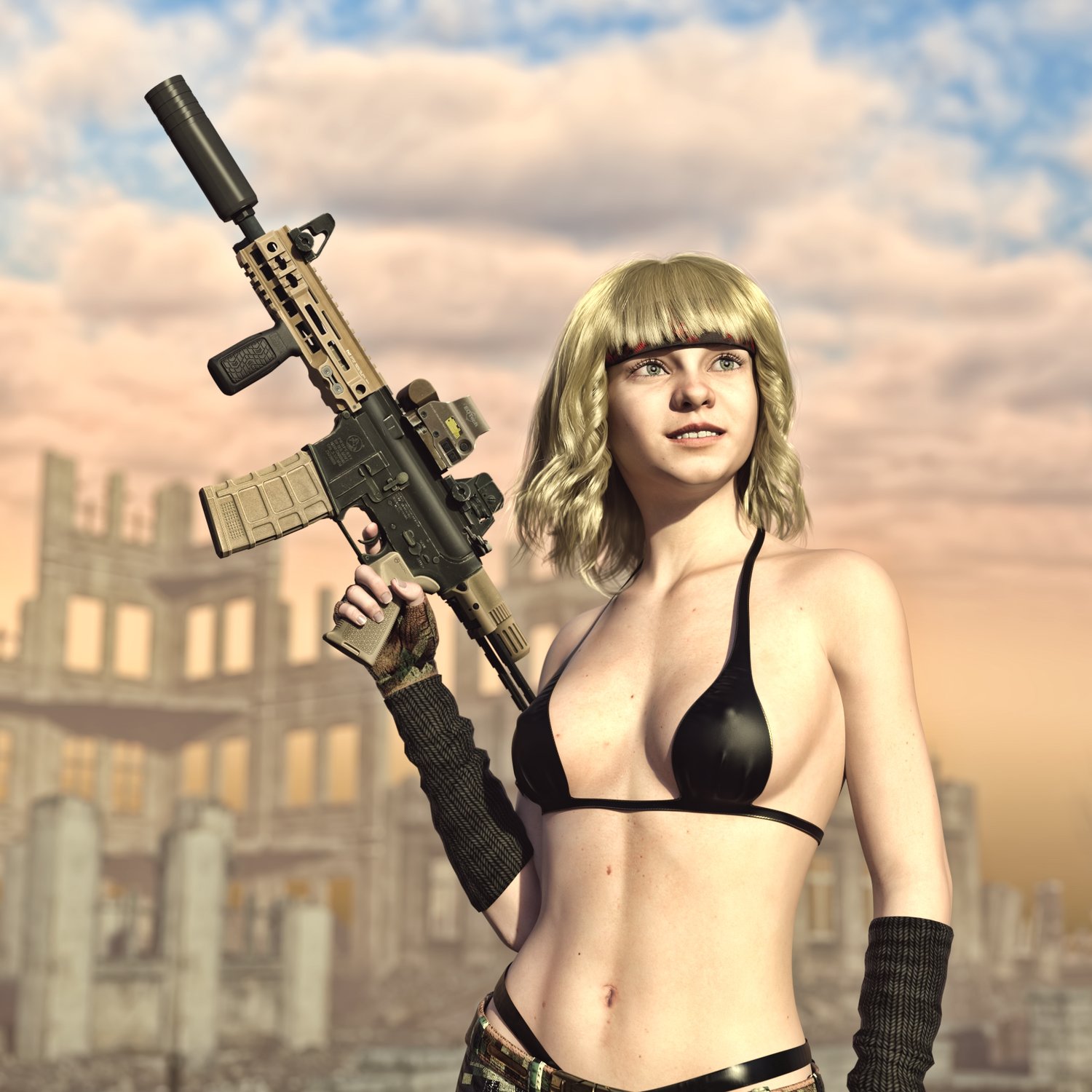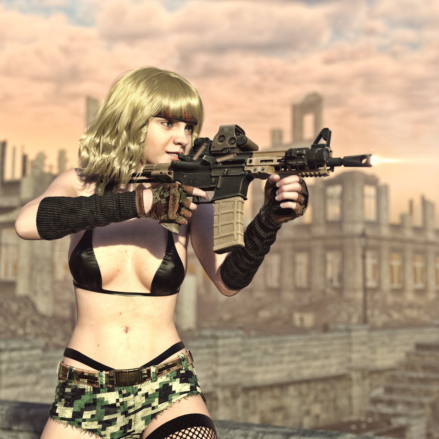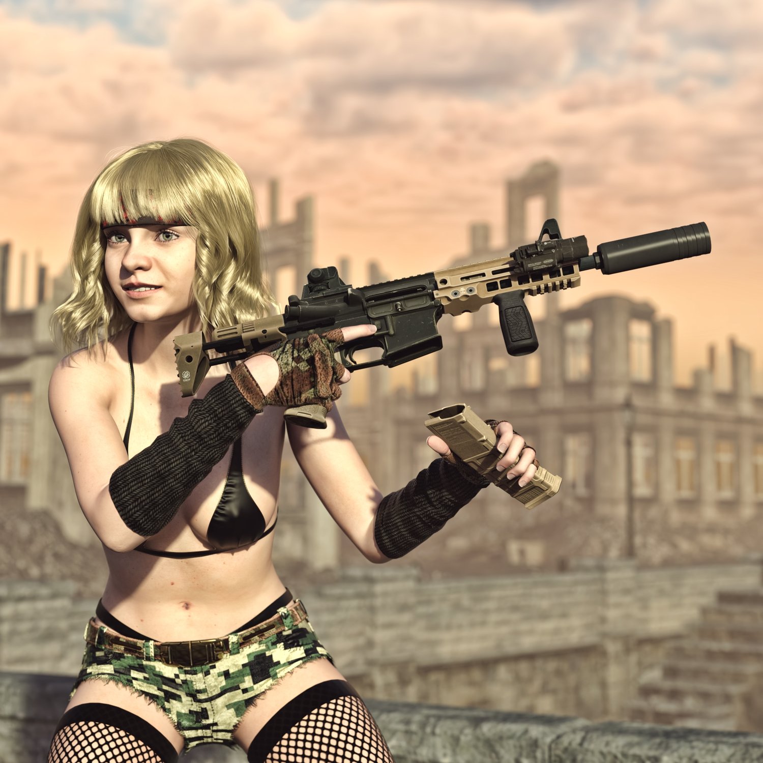 A short tactical variant of the classic AR 15 assault rifle, this time in 300blackout. Full power assault rifle cartridge in a very short and compact package. Converted and rigged for use with DAZ. Trigger, safety, bolt etc also rigged for more realistic pictures. Includes various accessories, such as silencer, a red dot, a light, front grip and rigged iron sights for various porpoises and pictures. Since parts are rigged, the gun can be used as just the basic configuration or an upgraded modern variant.
