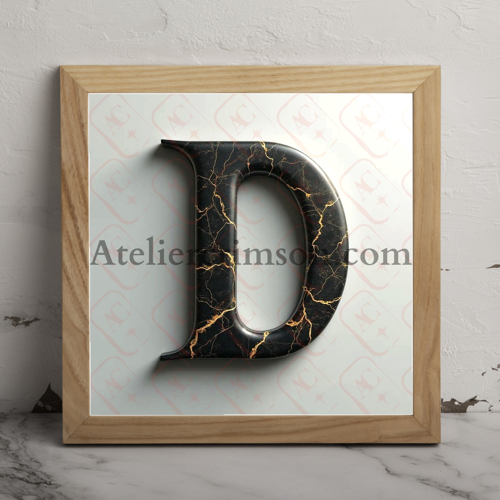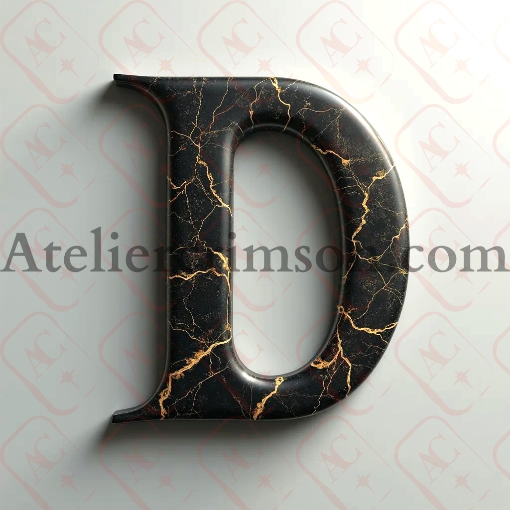 The letter D luxury black marble and gold. Download now this high quality AI-generated digital image.