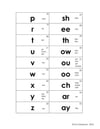 - 70 numbered phonogram cards – but flexible enough to give in any order, so you can target specific sounds.